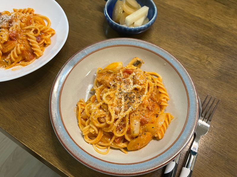 치즈가루 뿌려 먹음 더 맛있겠어요. 저도 로제파스타가 제일 맛있어요.