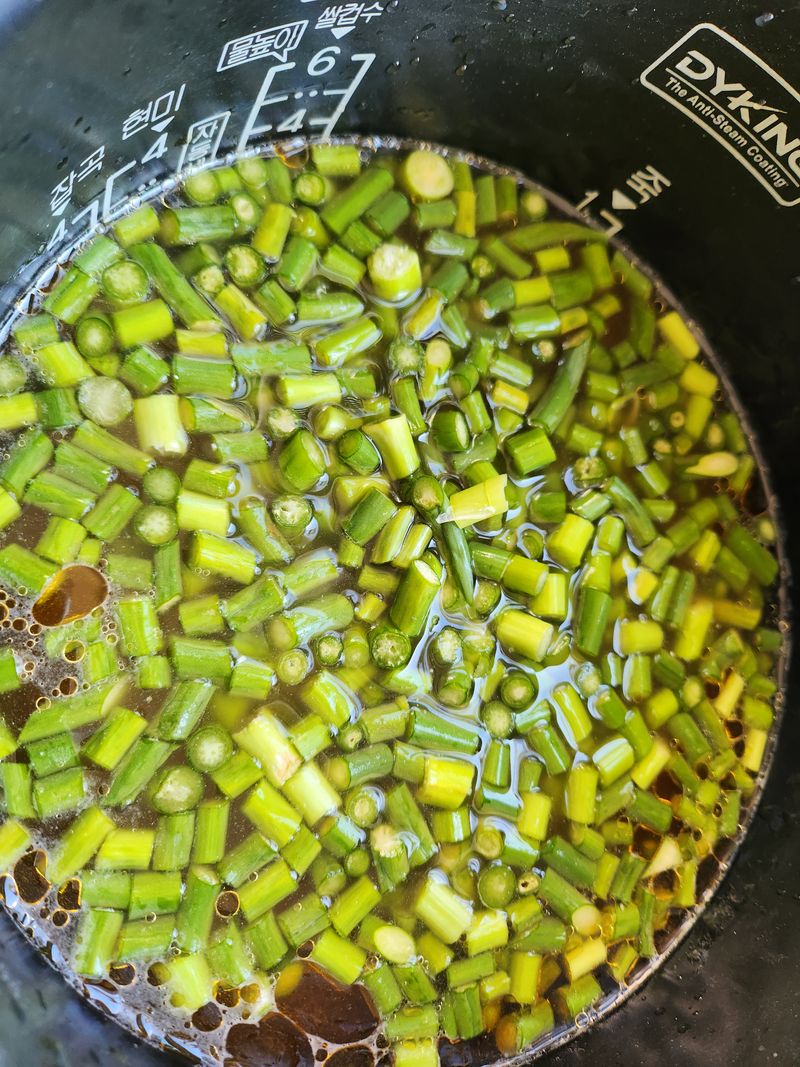 와, 대박이네요. 진짜 요리고수는 밥을 잘한다던데.. 마늘쫑밥 처음봤어요