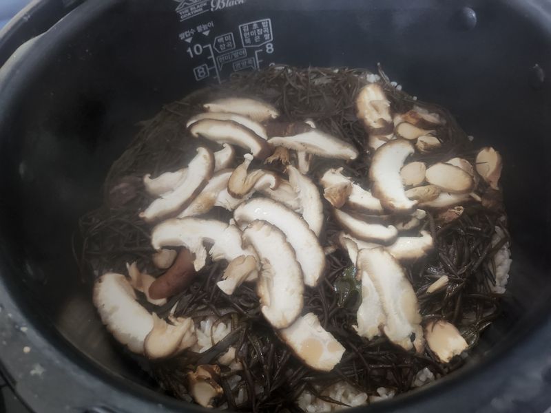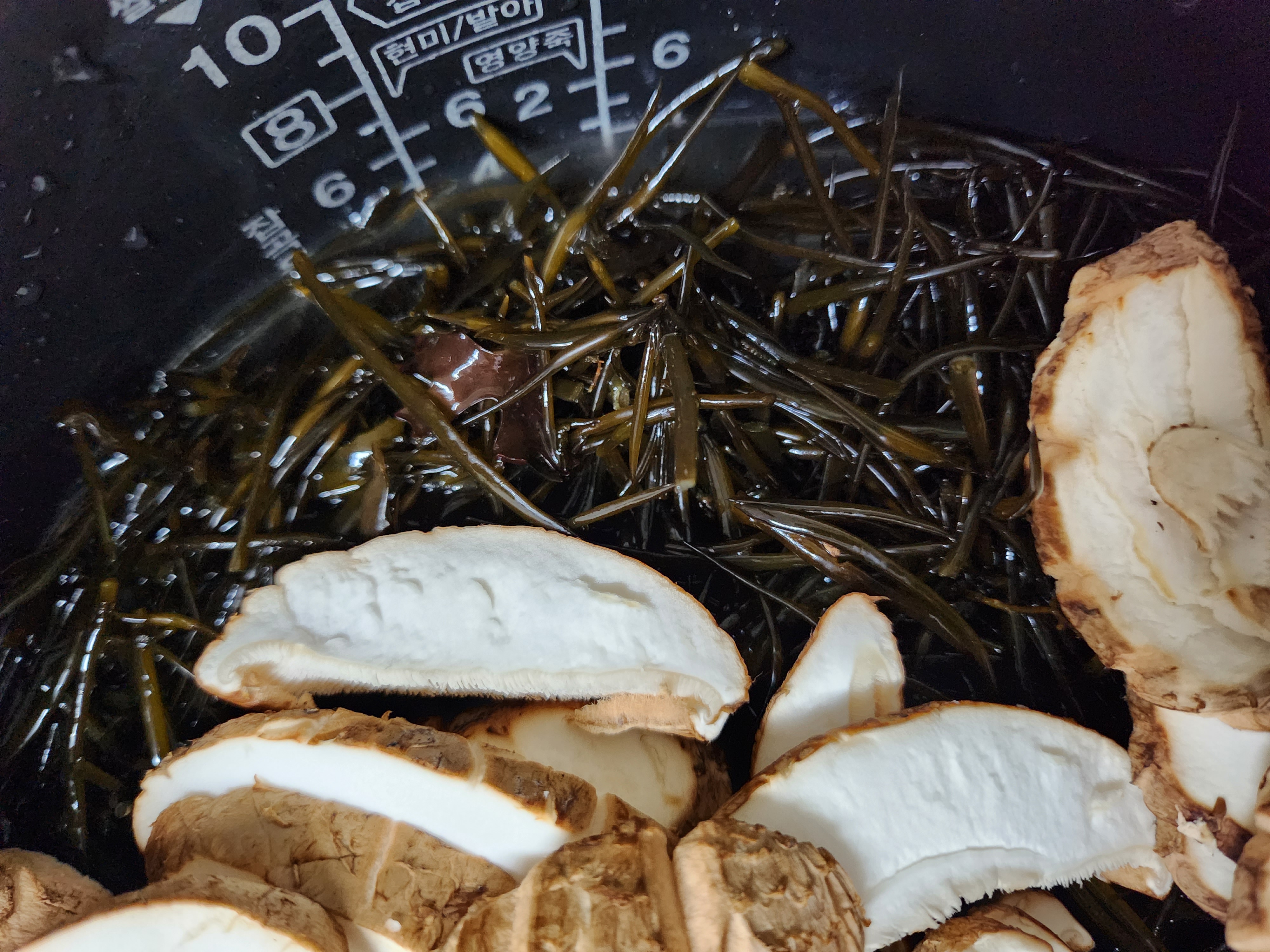 밥할때 표고버섯,톳 넣고 간장 참기름 다시물로 밥하기