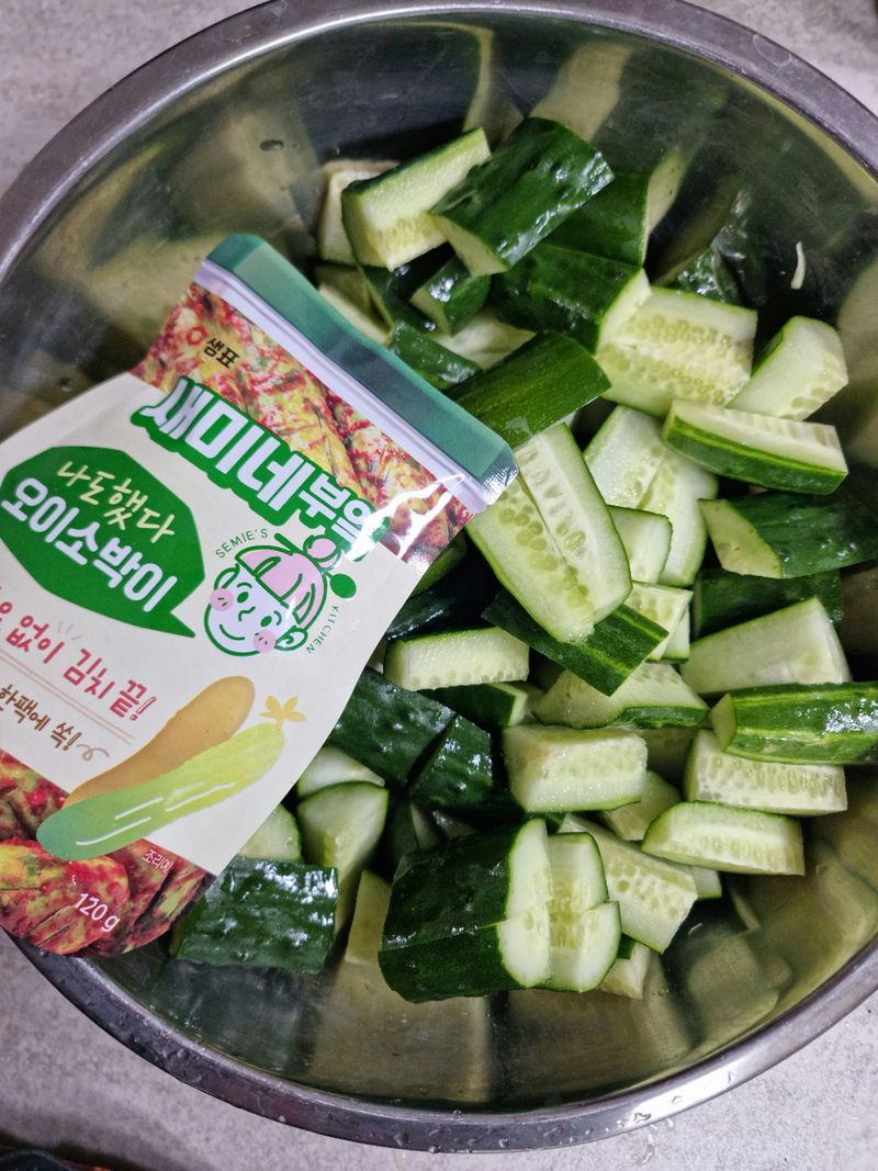 제가 오이 킬러거든요 ㅎㅎㅎ 오이를 더 맛있게 먹기위해서 새미의부엌 도움을 받아서 후딱 10분 컷으로 만들어본 오이 소박이 잘게 종종 썰어 밥 비벼먹어도 꿀인거 아시죠 ㅎㅎ?!^^