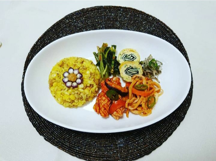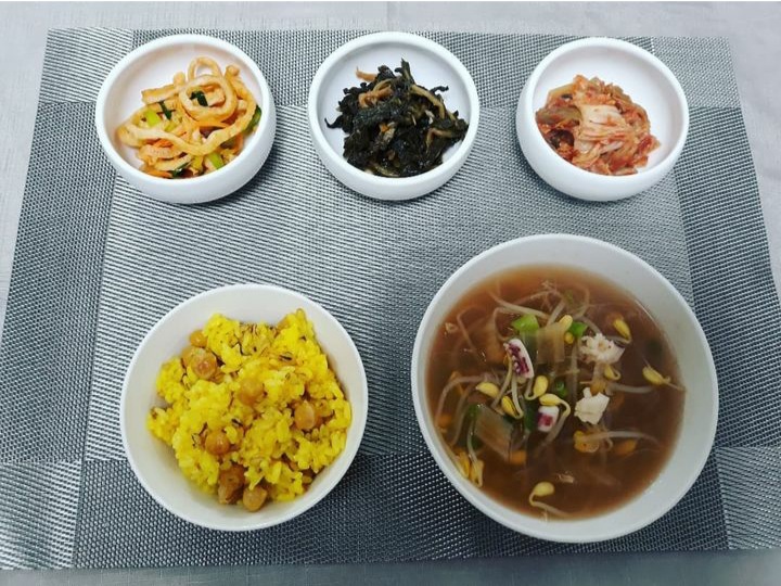 밥은 강황가루, 콩등 한 두가지 더 넣어 밥을 짓고 천연 조미료를직접 만들어 국과 반찬을 만들어요.
