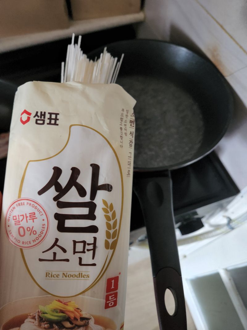 날씨가 더워 시원한 김치말이 국수가 먹고싶은데 국수면이 소화가 안될까 걱정되서 샘표쌀소면 꺼냈어요 :)