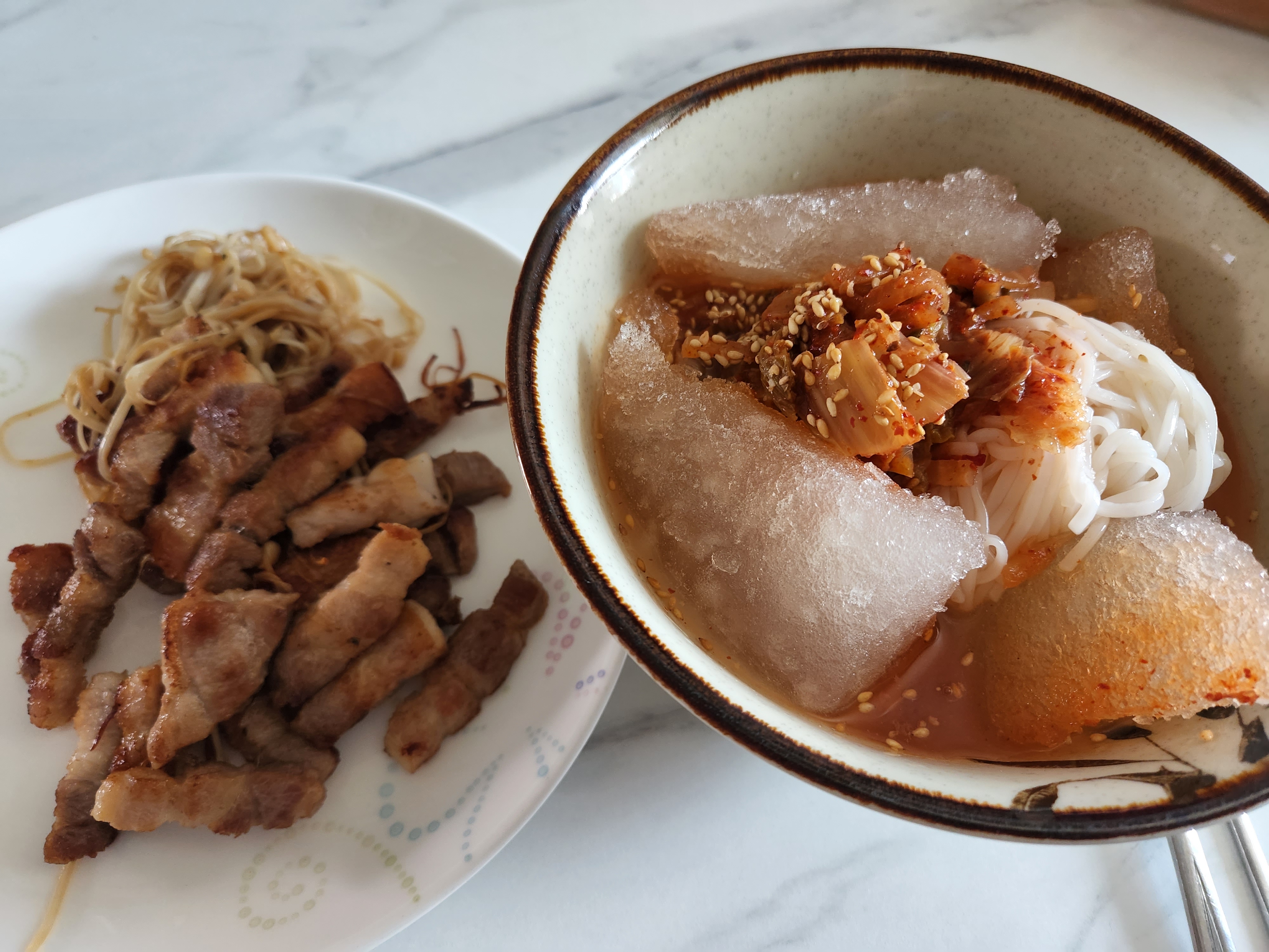너무 맛있어서 고기 미뤄두고 쌀소면부터 흡입했어요. 뿔지않아 끝까지 탱글탱글하게 맛있게 먹었네요. 아이들 비빔국수도 쌀소면으로 준비해야겠어요.