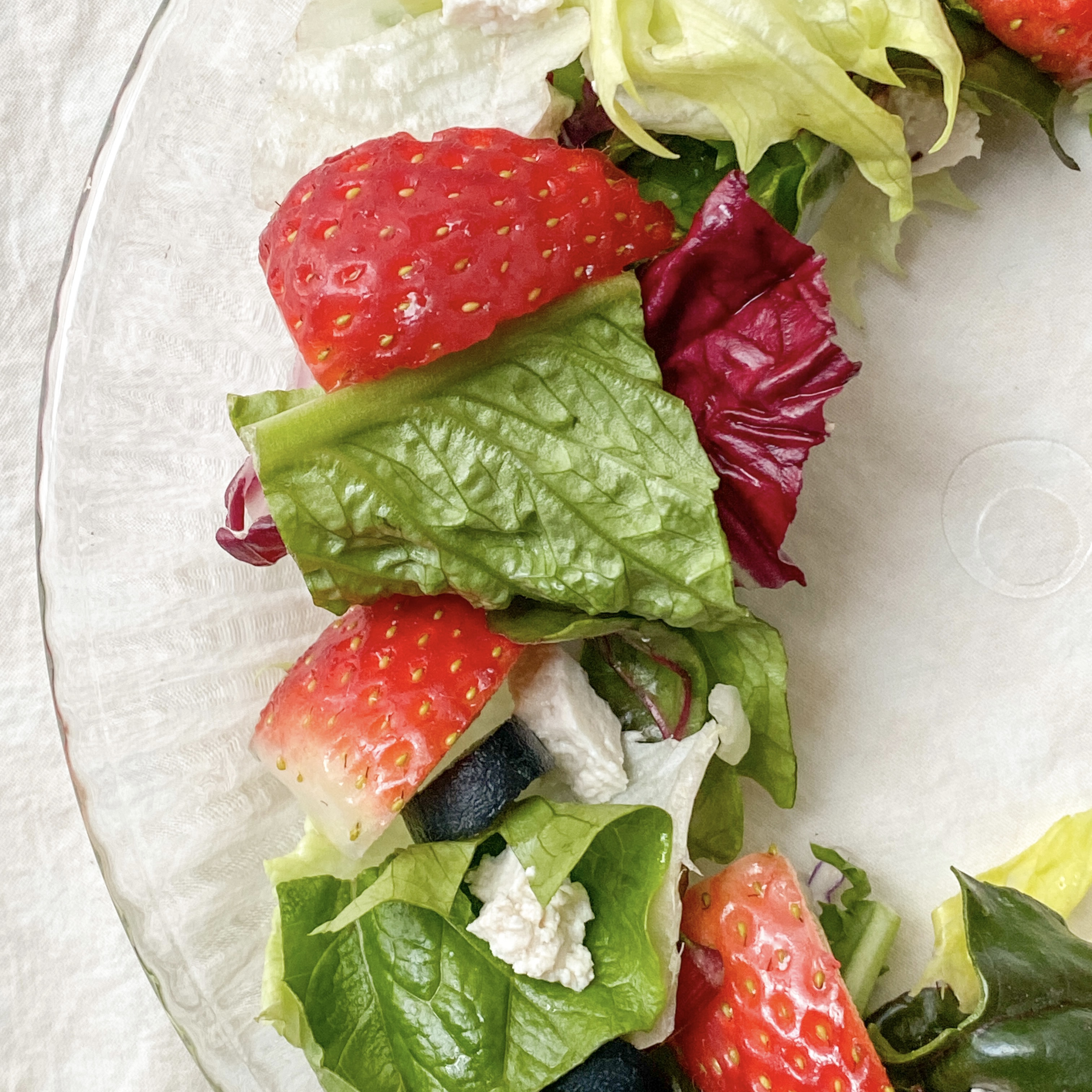 보기 좋은게 먹기도 좋다고 했는데 딸기 하나로 색감이 너무 예쁜 샐러드가 되었어요.
