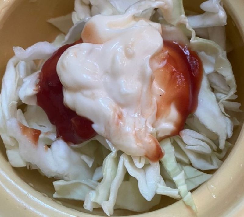 채소와 붓고 케찹 1.5 스푼,. 마요 1.5스푼 넣고 , 통후추 (통후추가 풍미가 살아잇음 !!)