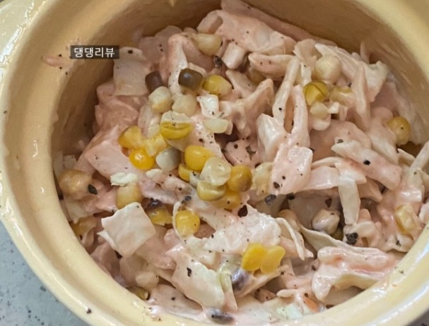 옥수수를 넣어서 식감이 더 좋을것 같아요. 모닝빵에 넣어먹음 더 맛있을것 같네요.