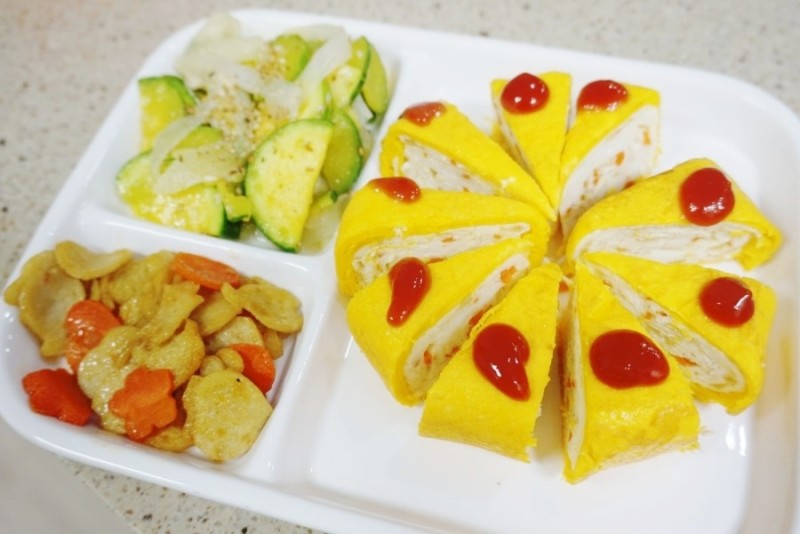 막내는 쿠키틀로 어묵과 당근을 이쁘게 모양내어 어묵볶음을 만들었어요 첫째는 짜투리채소를 잘게 썰고 계란을 나누어 계란말이 케이크를, 둘째는 애호박자르고 볶아 애호박새우젓볶음을 만들었답니다. 일주일에 한번 아이들과 반찬만들기를 하는데 정말 즐거워해요^^