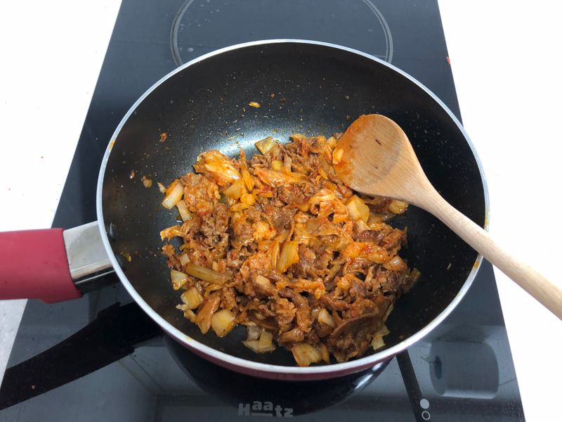 차돌과 김치를 듬뿍 넣고