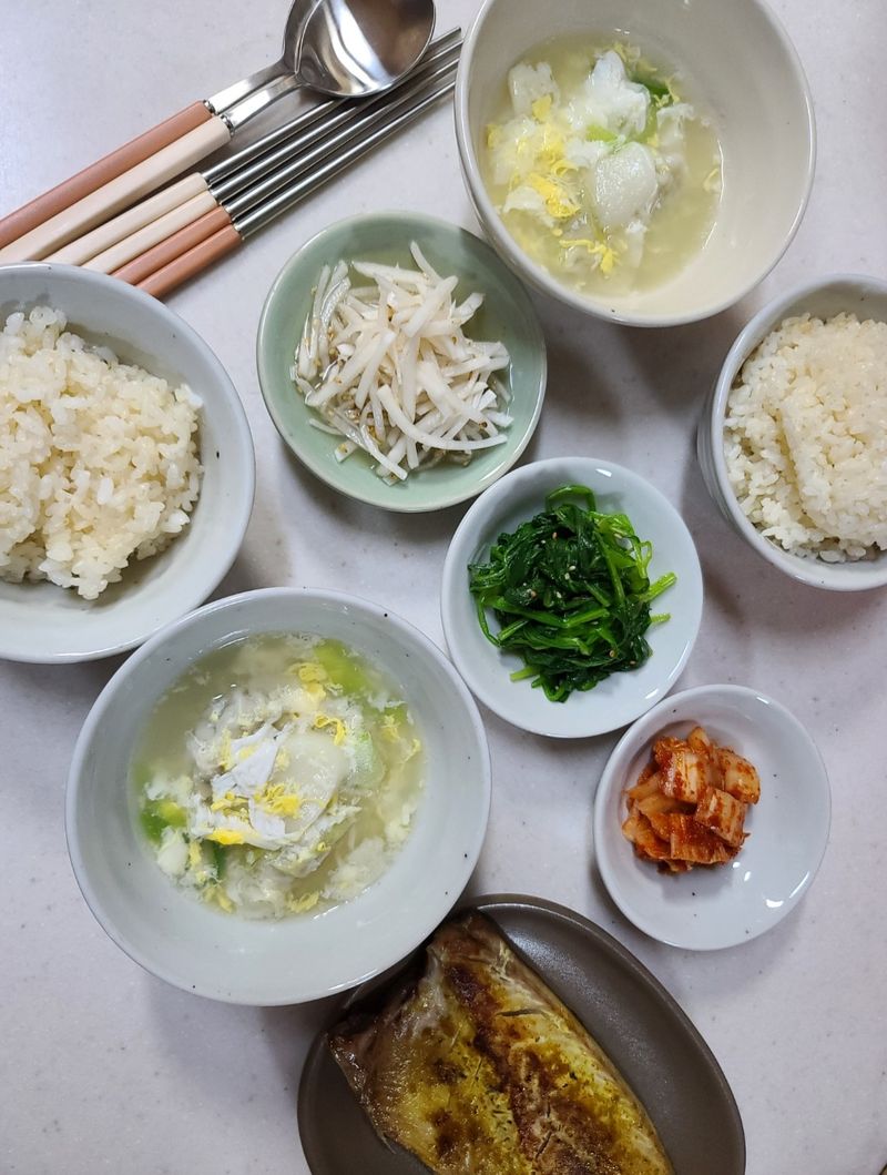 건강한 한 상 같네요💗 식기가 차분하고 깔끔해서 덩달아 마음이 편안해지네요 ㅎㅎ