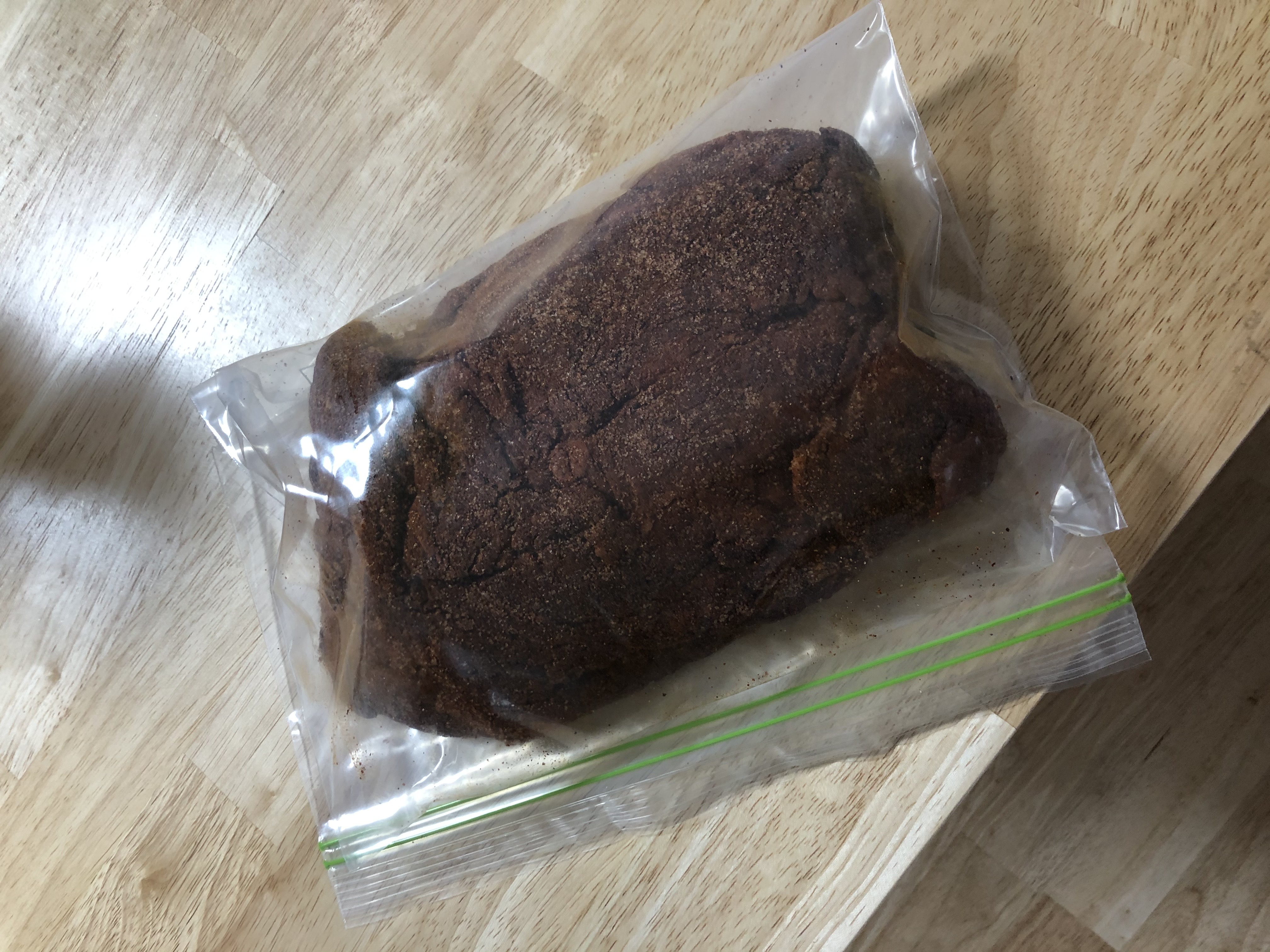 1) 목살에 각종 재료(소금, 후추, 설탕, 파프리카가루 등)가 들어간 럽을 바르고 냉장에 하룻밤 숙성시킨다.