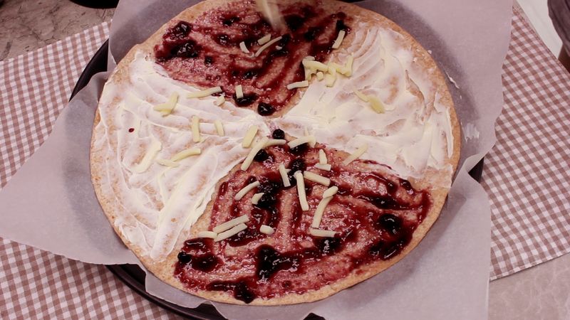 또띠아에 크림치즈와 블루베리 잼을 바르고 또다시 또띠아를 덮어