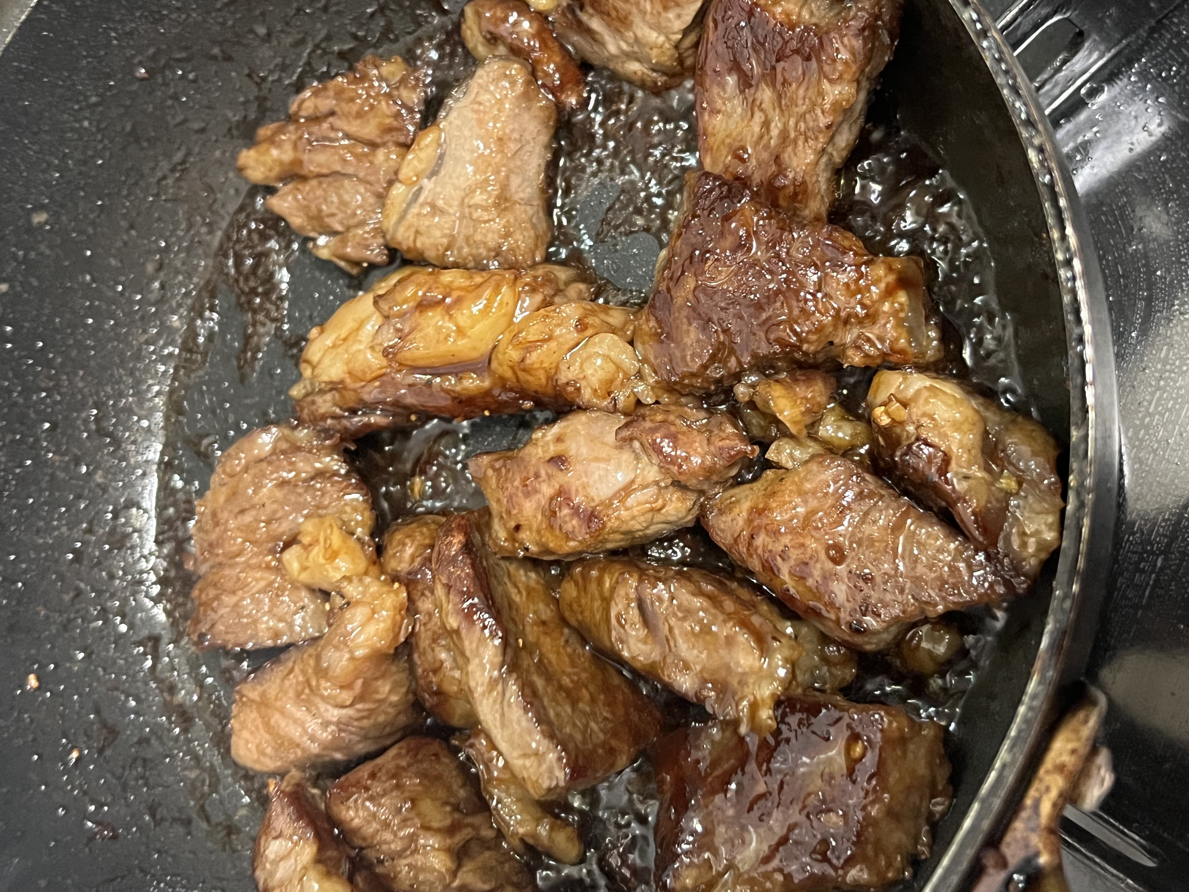 그래서 일단 굽다가 새미네부엌 잡채소스가 있어 휘릭 부어 졸여주니 맛있는 고기로 탈바꿈!!!