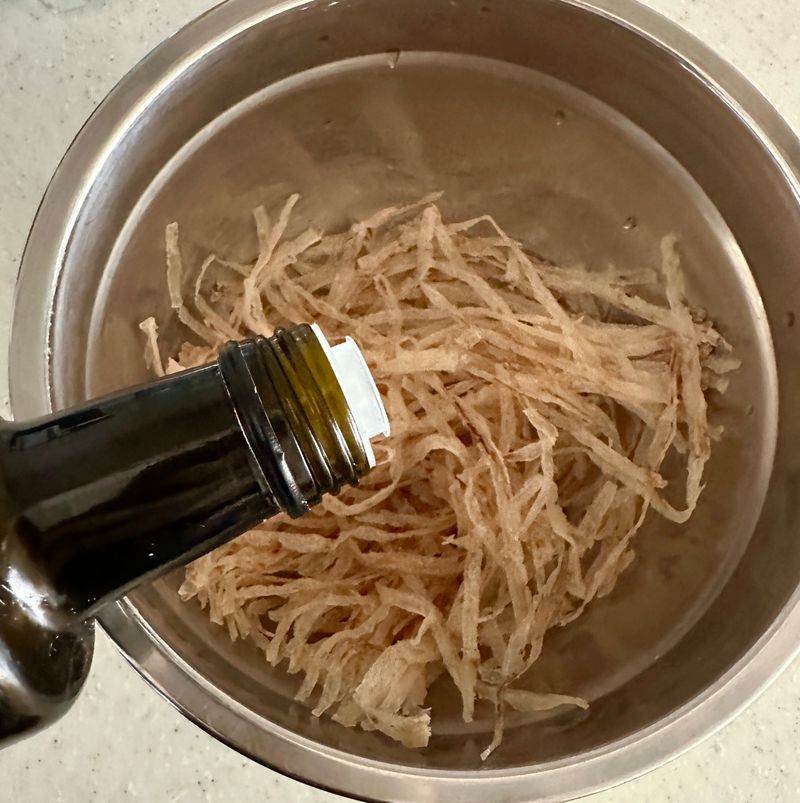 꼭 두껍지 않은 명엽채 골라야해요. 반찬용으로 두꺼운 것도 있거든요 세부 사진 보시고 얇은(투명도 보면 알아요) 걸 사용해야 바삭하고 맛있어요!