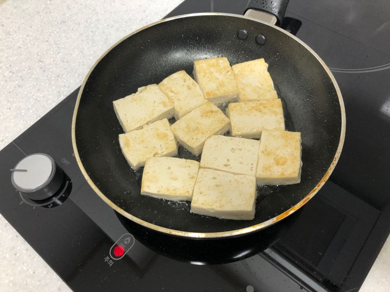 1. 두부를 먹기 좋게 썰어 물기를 제거한다.