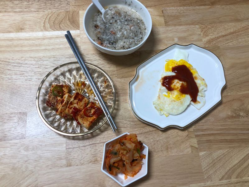 계란후라이, 인스턴트죽과 함께 먹어봤어요💗
