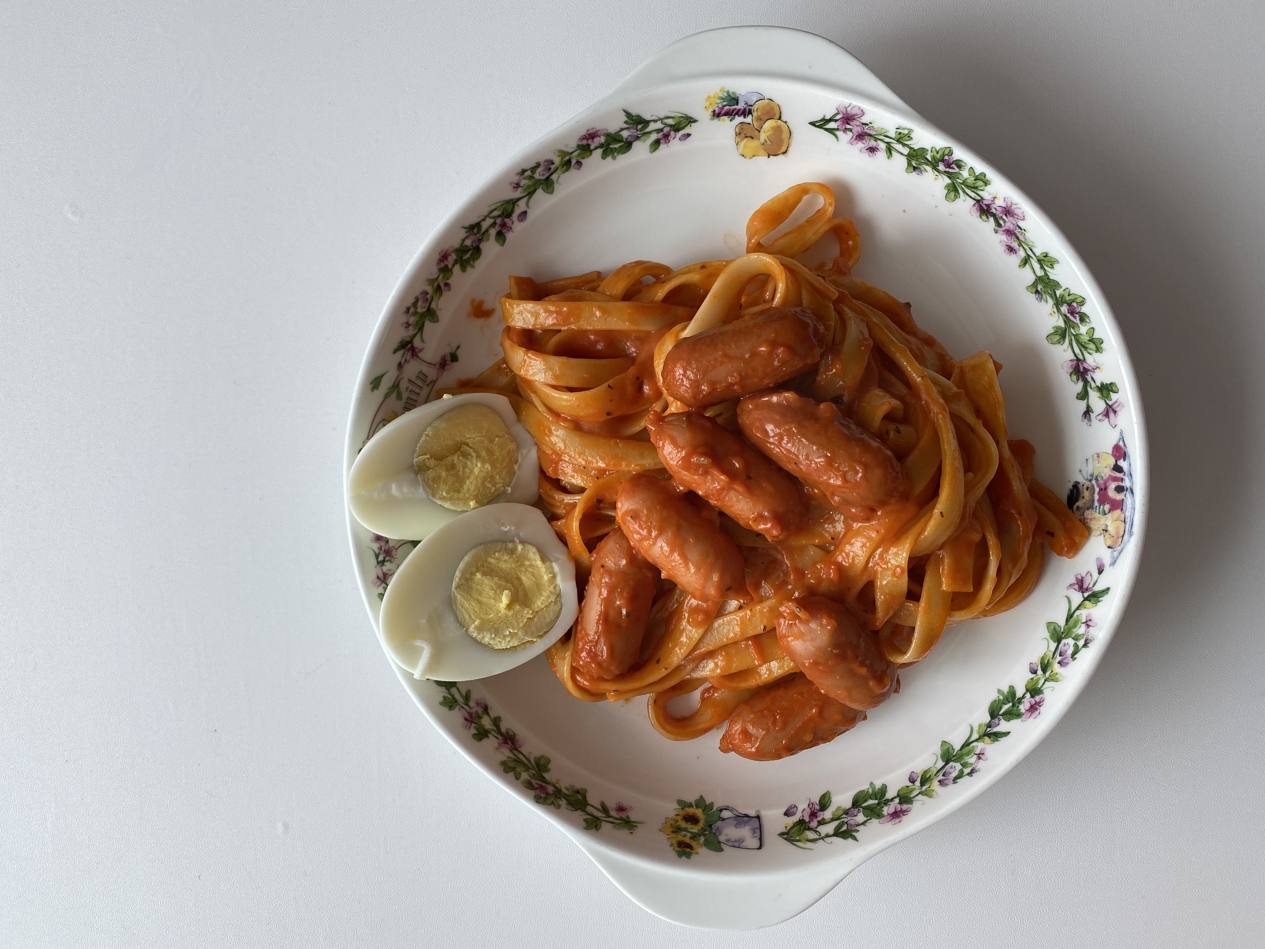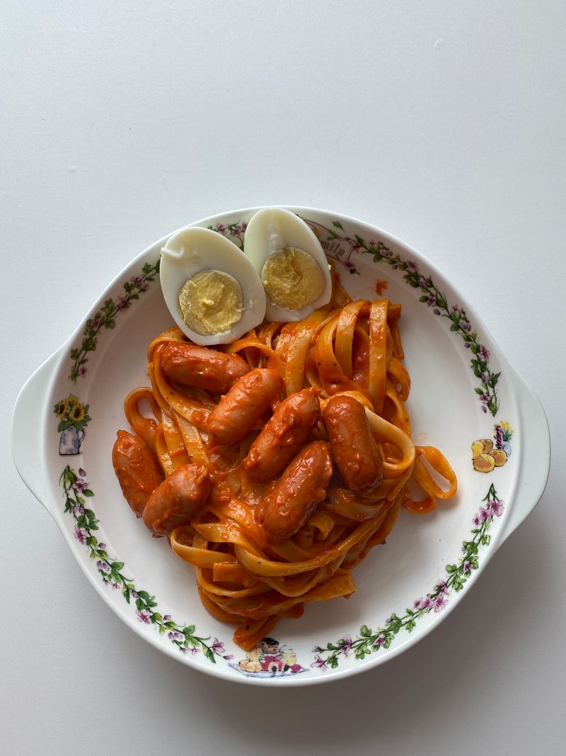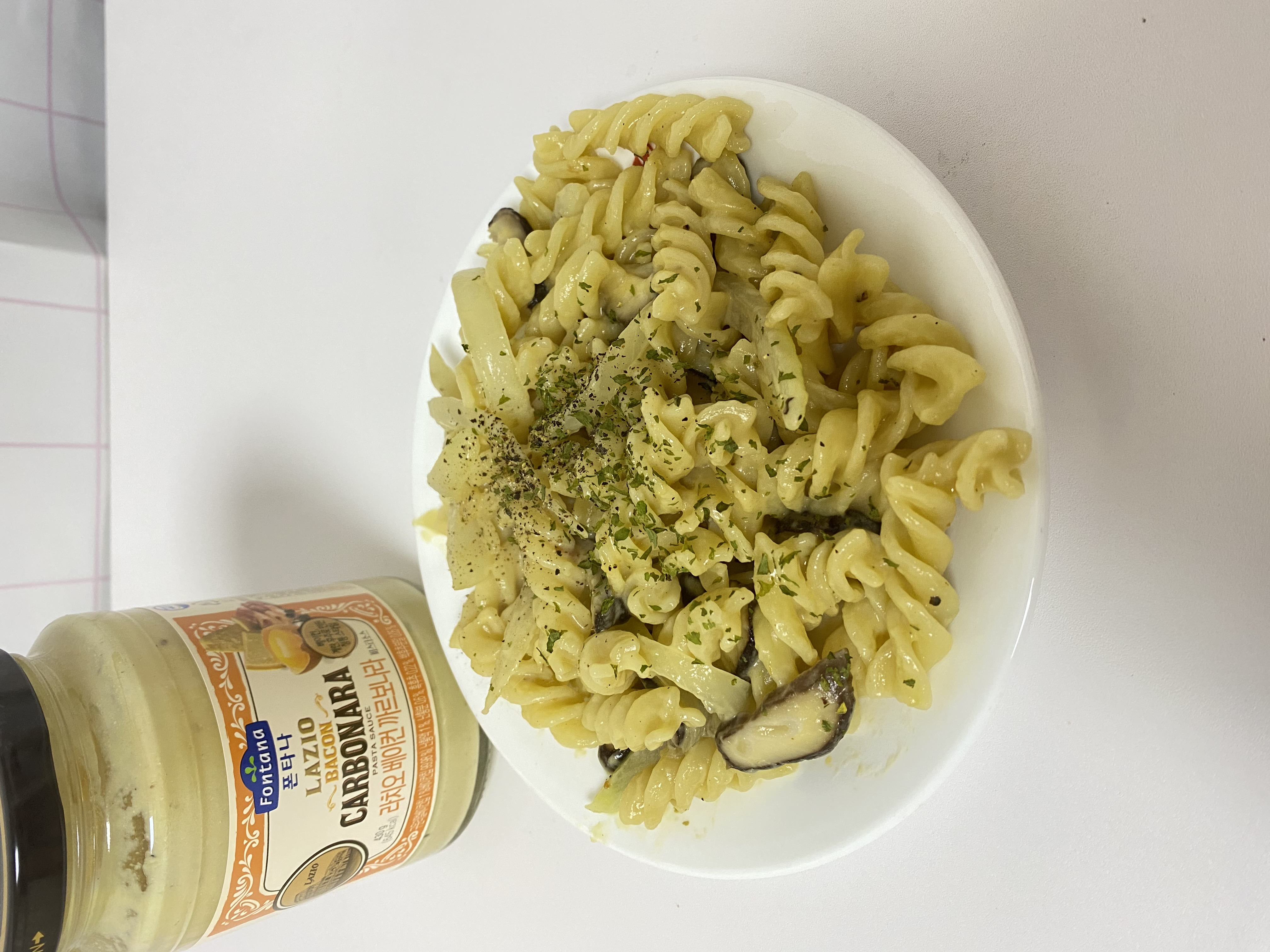 집에서 소스랑 햄 버섯 야채 넣고 버터랑 볶아주면 감칠맛 팡팡 이에요