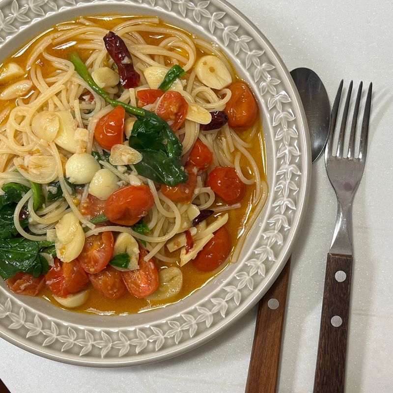 저는 국물 냥냥한 오일파스타가 좋아서 면수를 꽤 넣는 편이랍니다 ㅎㅎ
