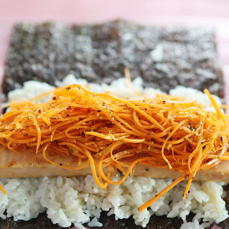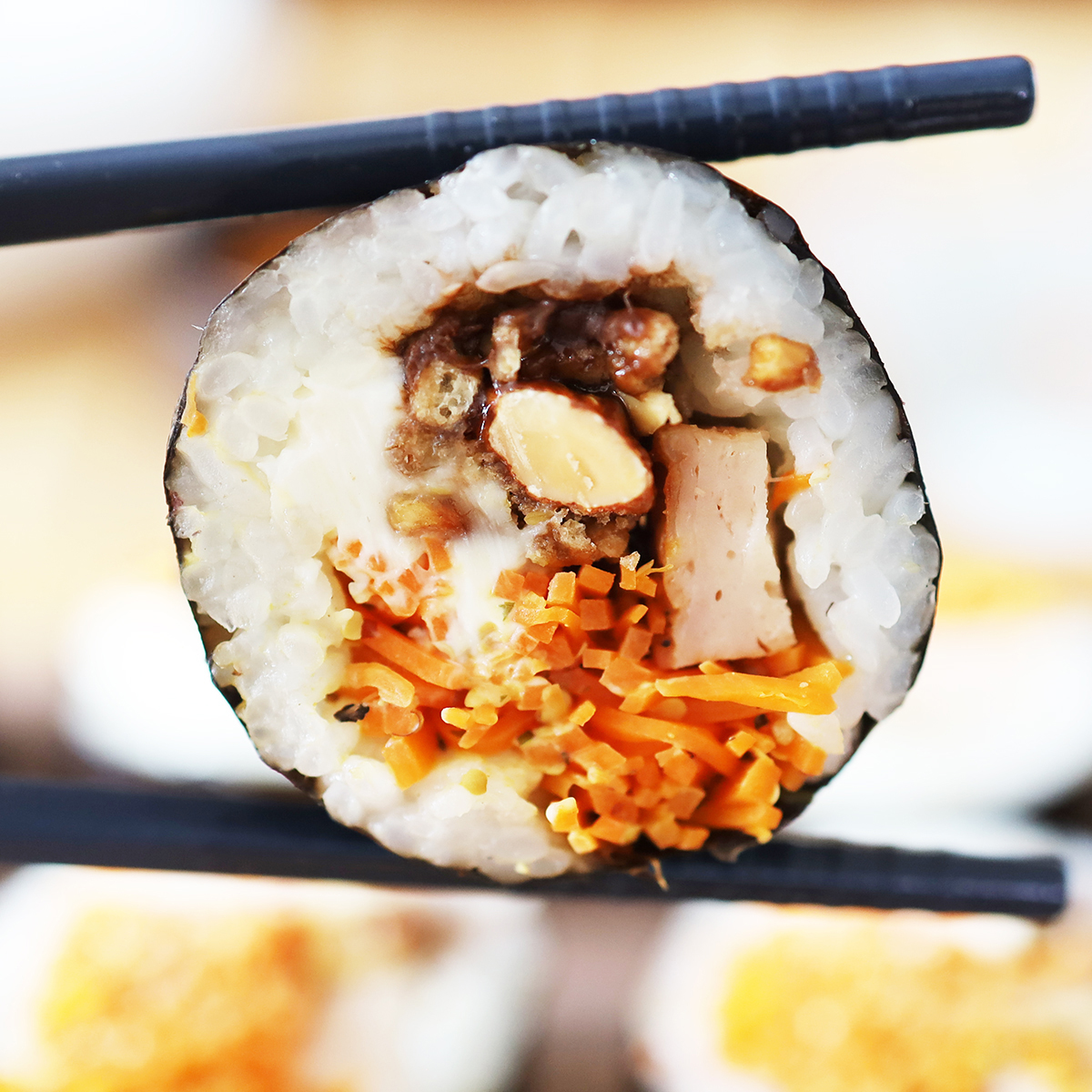 각종 견과류의 고소함과 부드러운 크림치즈, 아삭한 당근라페의 조합이 엄지척인 견과류 크림치즈 김밥