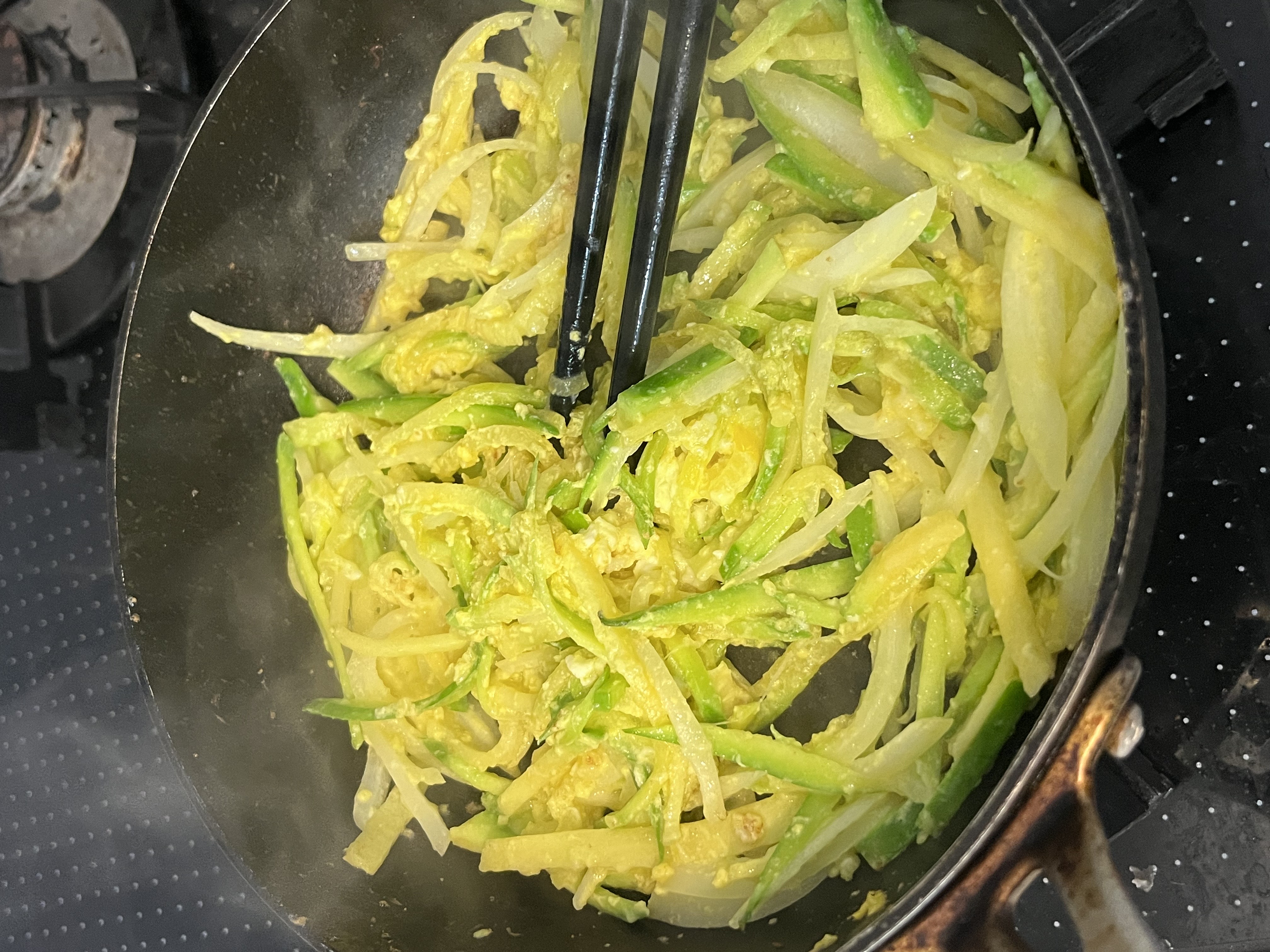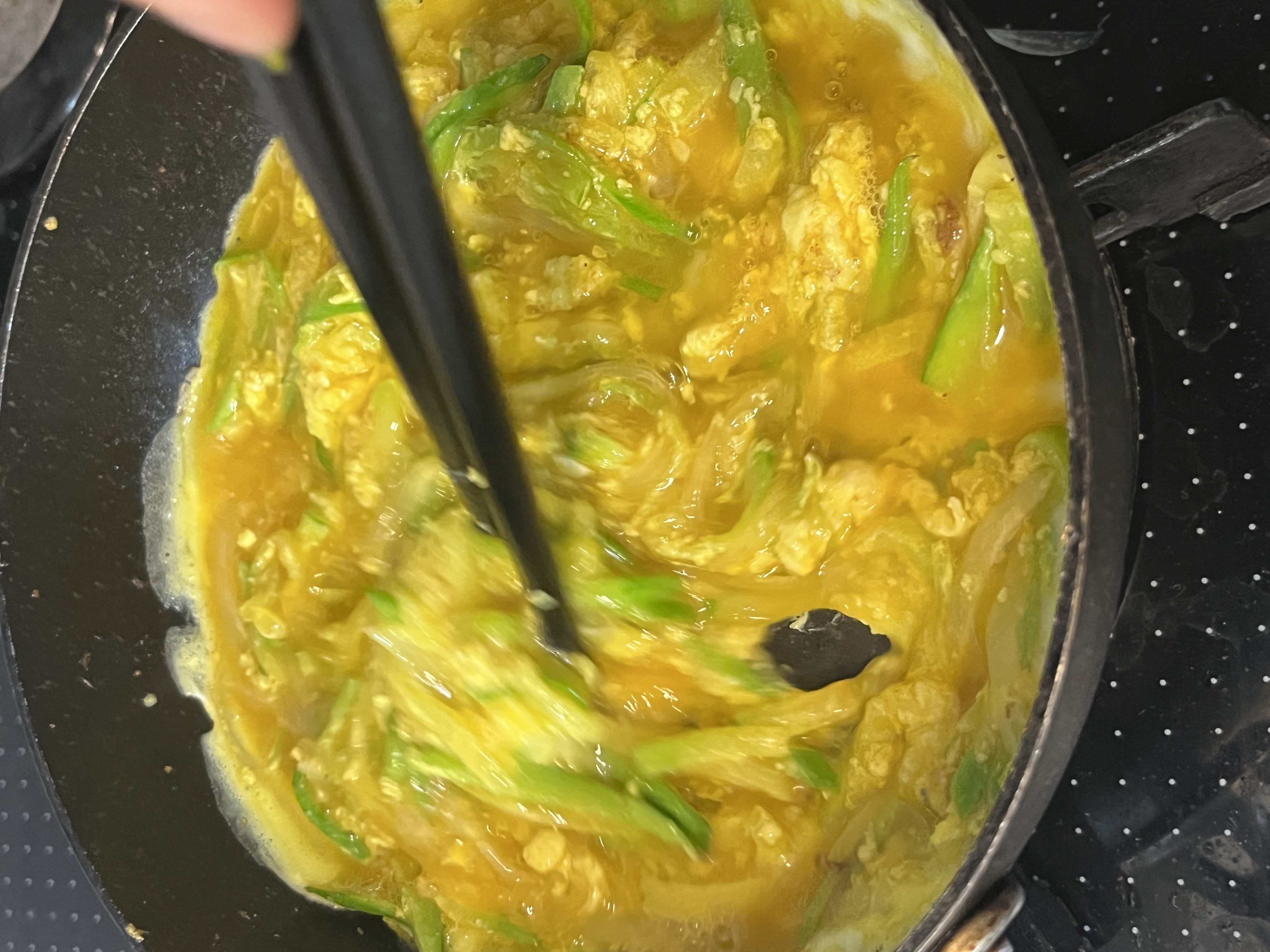 원래는 야채만 먼저 볶는건데 그때부터 약간 스크램블처럼 계란이 익어서