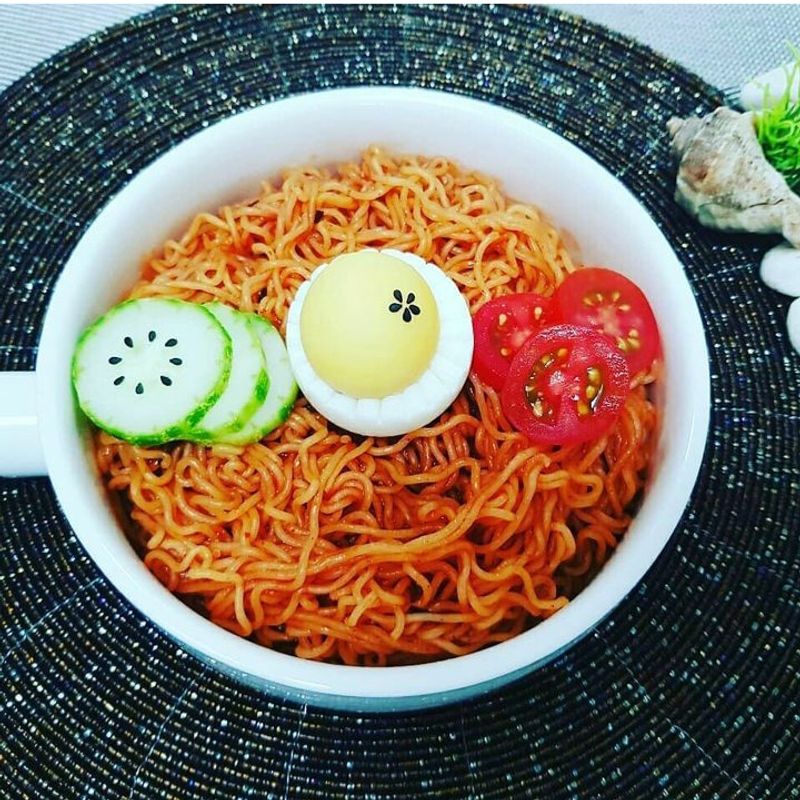비빔면이나 냉면에 올리는 삶은 달걀 센스 있게 모양내는 방법입니다.