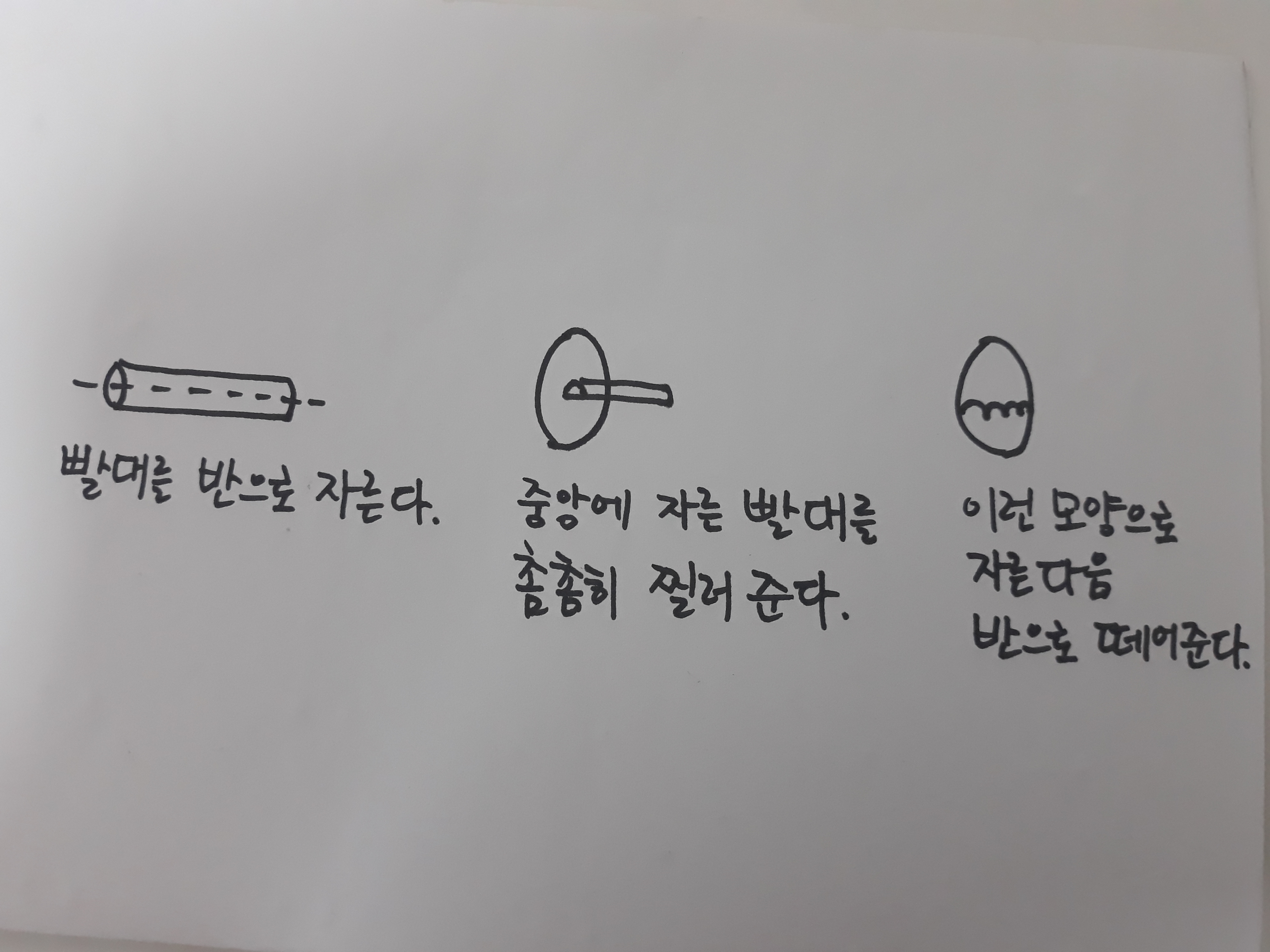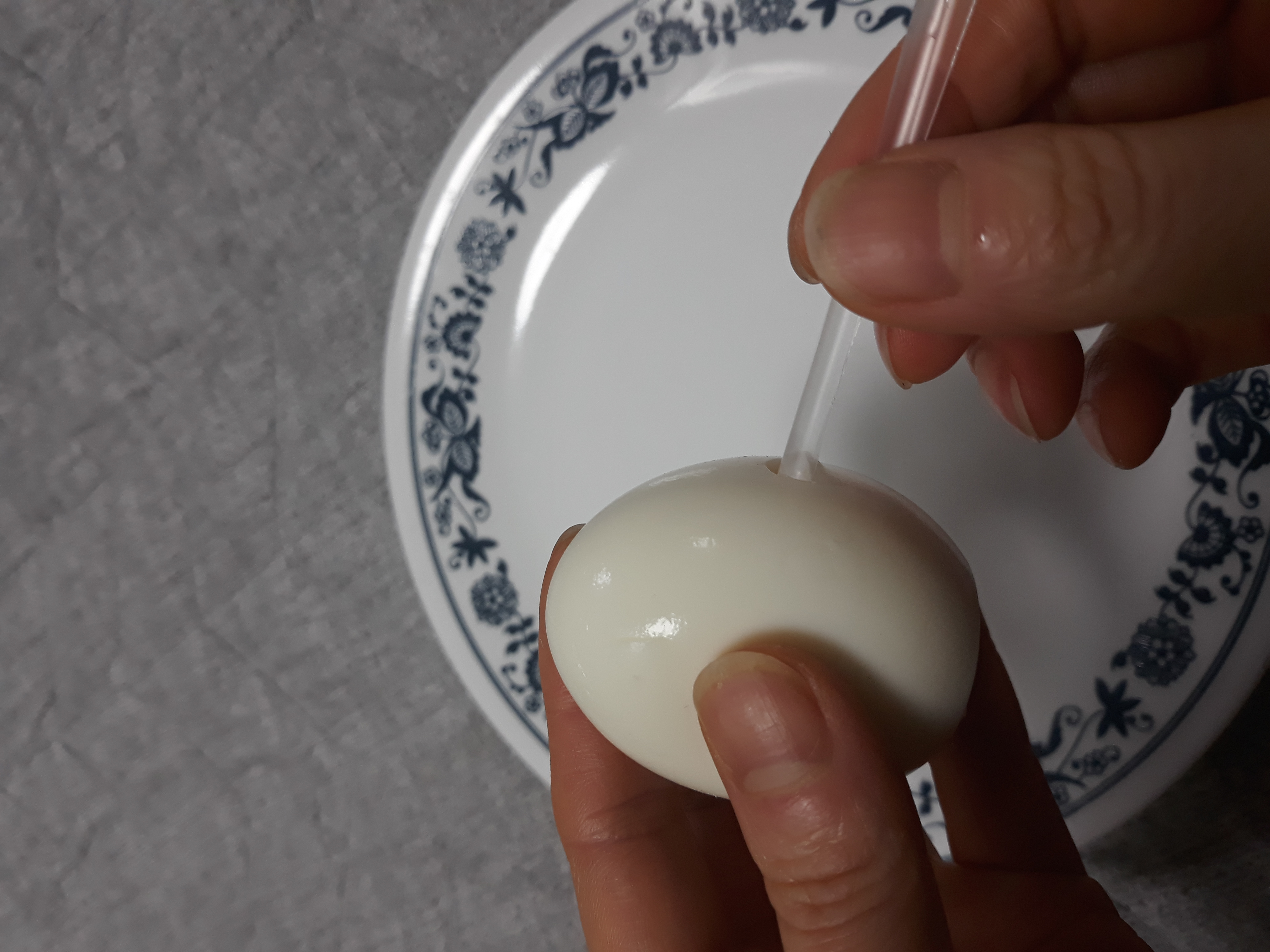 3.삶은 달걀 중앙에 빨대를 찌르듯 연결해서 촘촘히