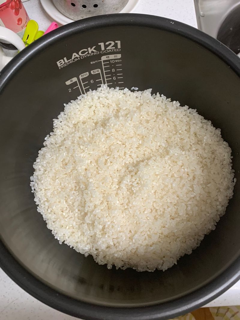 밥이 완성된 다음 저어주지 않으면 밥알이 눌리고 딱딱해질 수 있어요.