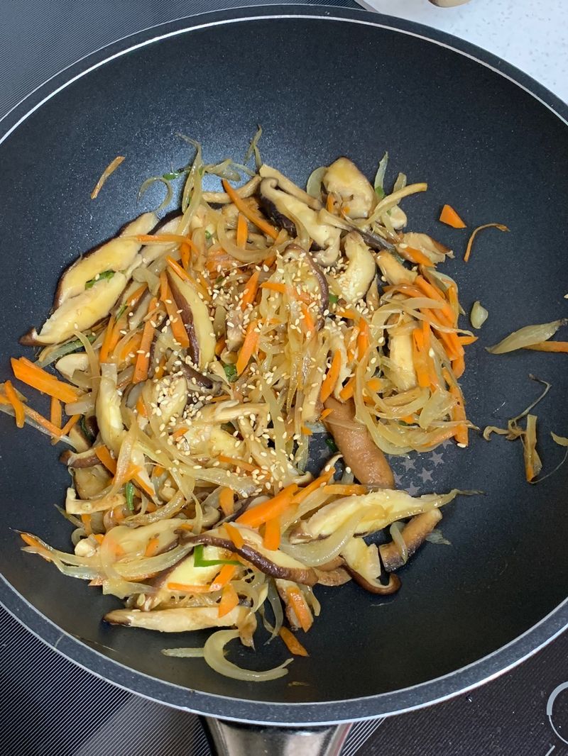 재료가 듬뿍 들어가서 불린 당면만 추가하면 잡채 비주얼이 될것 같아요!!