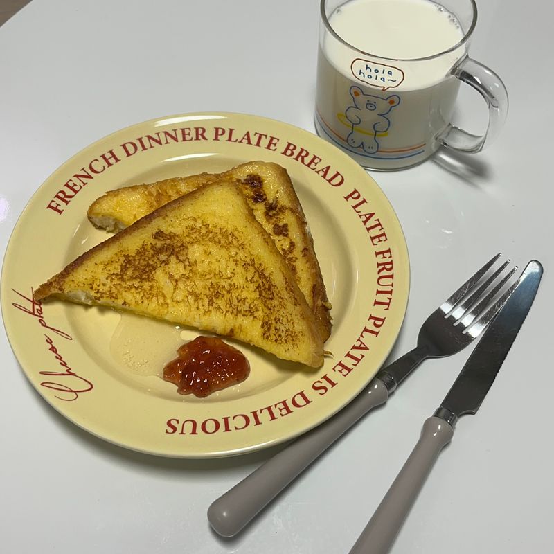 게을러지는 주말 아침.. 간단하고 감성 넘치게 브런치 해먹었어요!! 새미가 알려준 방법대로!! 계란물에 식빵을 30초~1분 적시니 더 보들보들 촉촉한 프렌치토스트 완성💕 버터의 고소함과 꿀의 달달함이 너무 제취향🤭 집에 과일이 없어서 좀 아쉬웠네요🍓🍒🍌🥝🥭