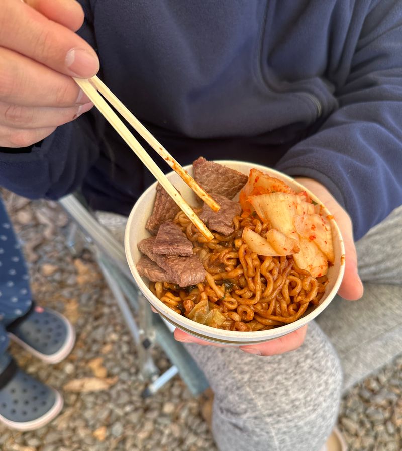 (참고로 일회용품 안쓰는 캠핑을 주장하지만 집에 컵라면 사고 자동으로 들어있는 나무젓가락 소진을 위하여 온통 나무젓가락이네요 🤣)