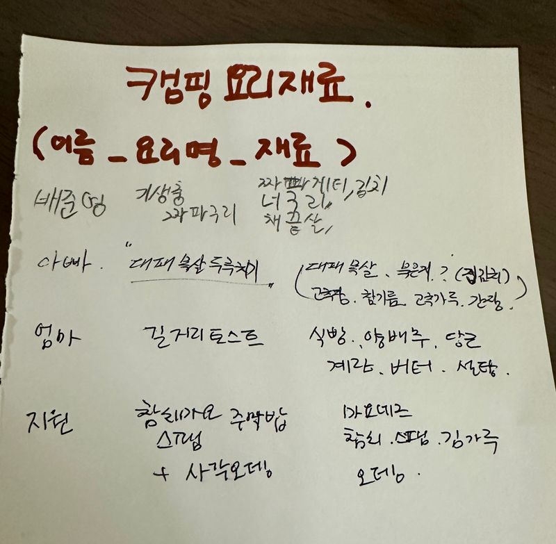 캠핑가면 저희가족도 메뉴 각자 하는거 해봐야겠떠용~~~👍👍👍