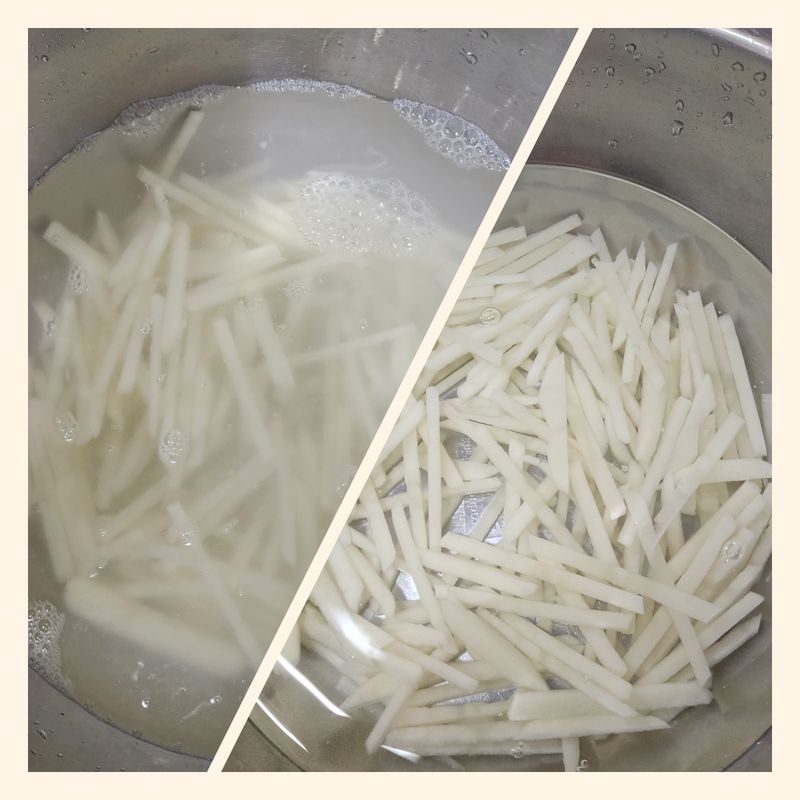 감자를 썰고 물에 담가 전분을 제거해야 한다는 걸 처음 알았어요-> <