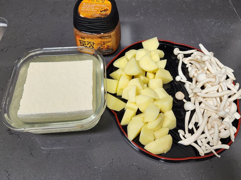 그래서 토장찌개 양념 마트에서 보고 사봤는데 따로 육수 안내도 감칠맛 있게 돼서 맛있었습니다!!