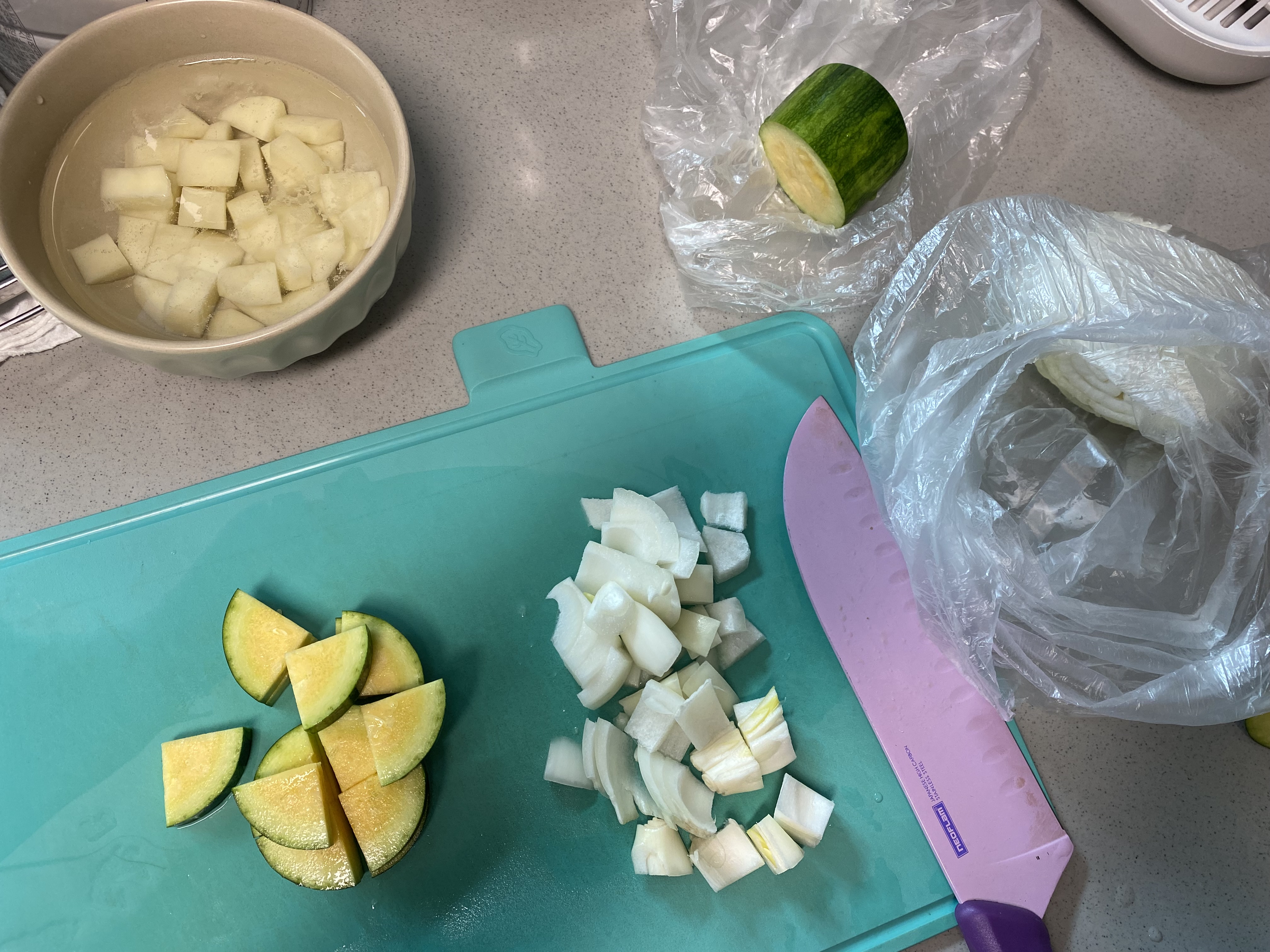 집에 있는 야채들과 정육점에서 잡채용 고기를 사왔어요‘