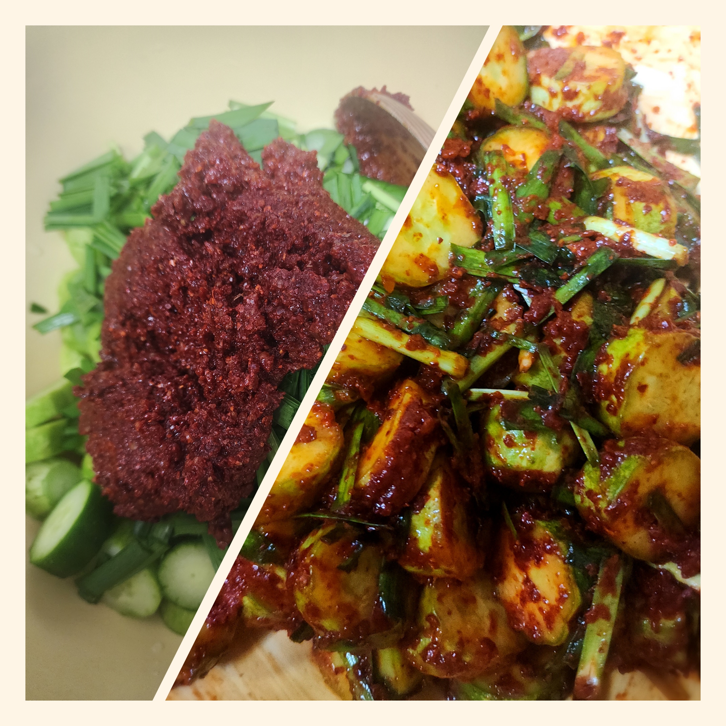 하루 정도 지나면 오이의 물이 나와 양념과 자연스럽게 물들어 더 조화로운 맛을 낼 수 있으니 만든 직후부터 숙성후까지 취향에 따라 즐겨보세요 🤗