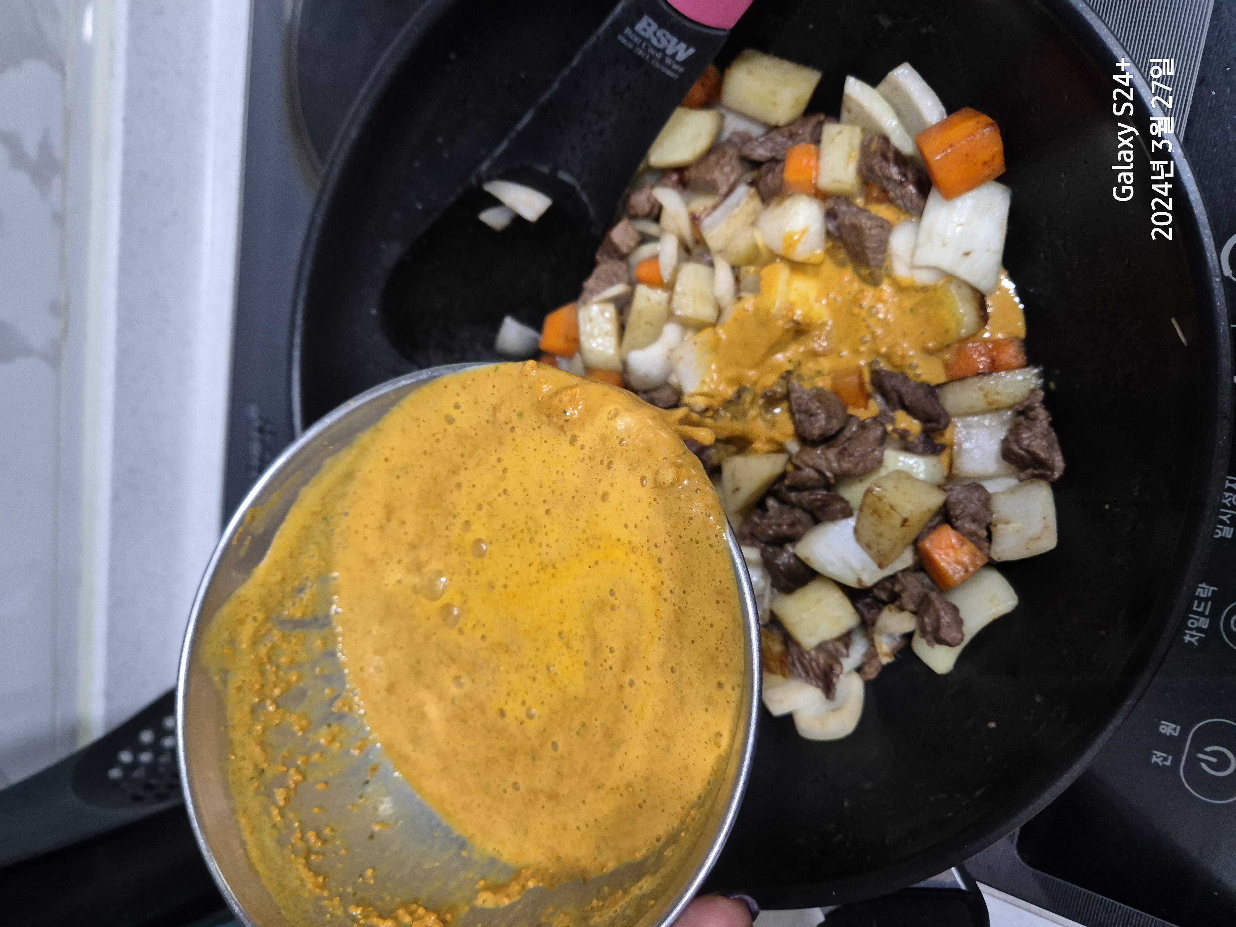 플랫폼대로 따라하니 재료대비 물양도 적당하고 맛있는 카레가 완성되었네요~~