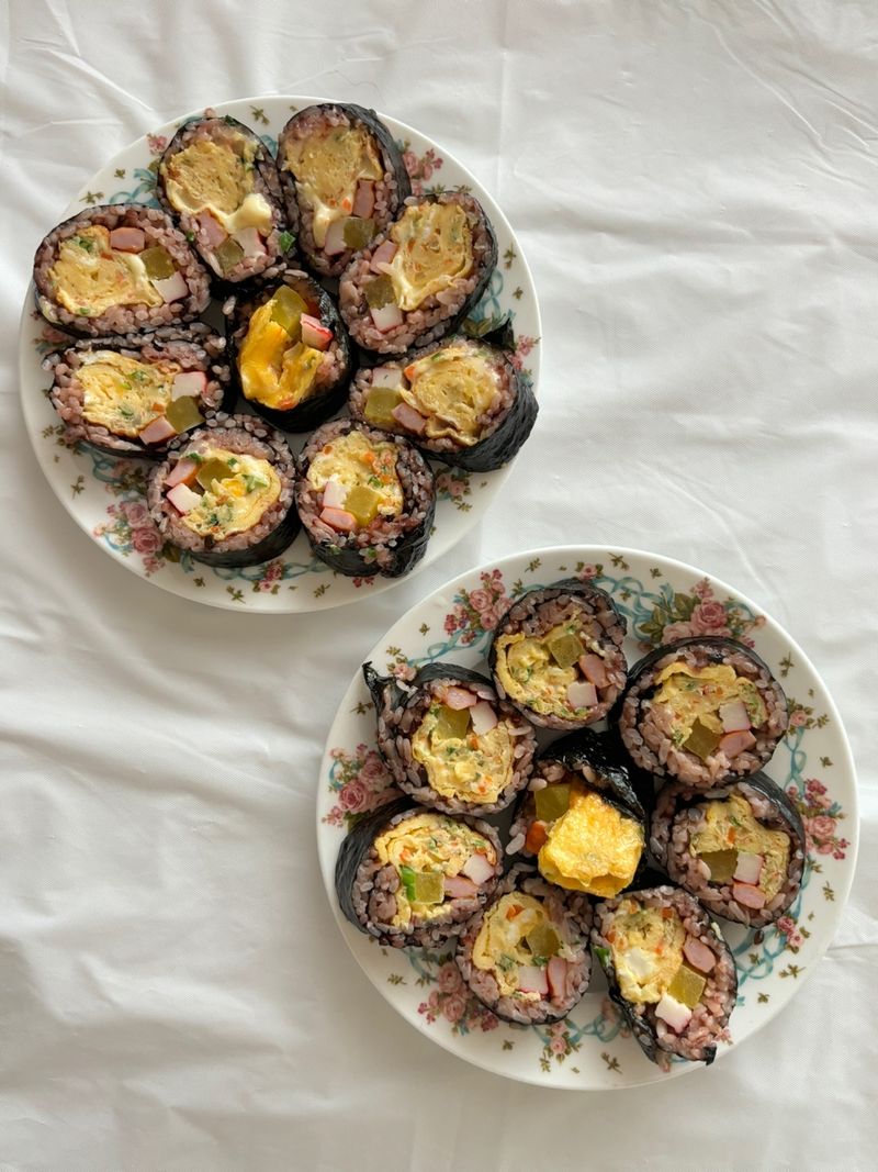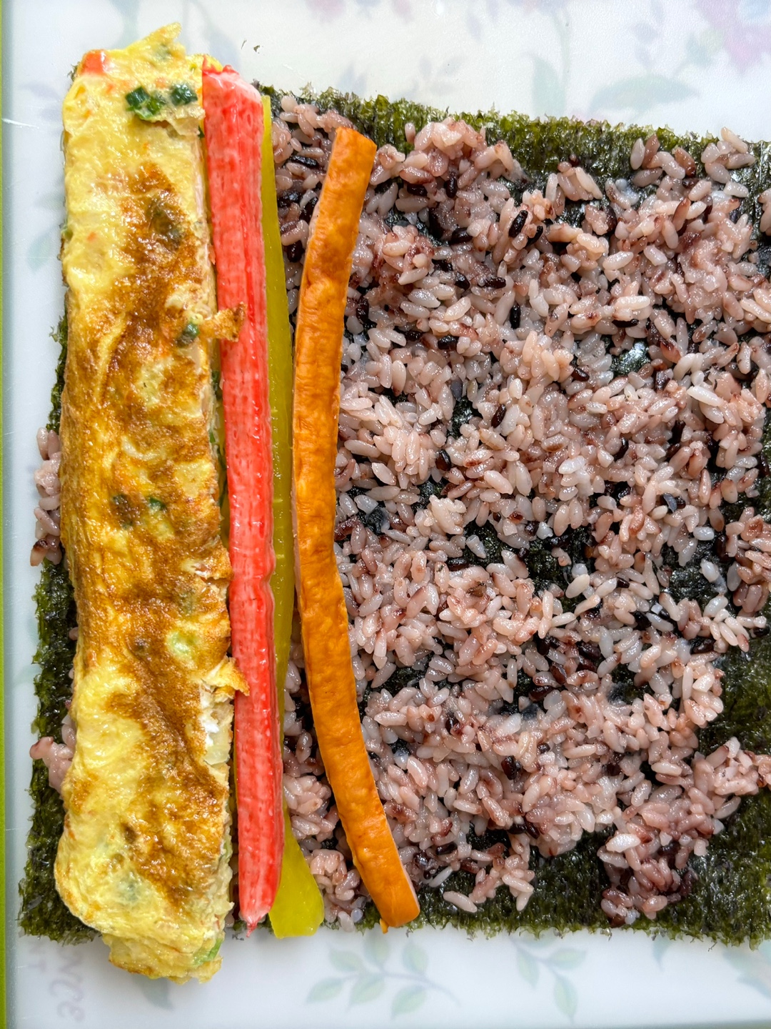 저는 김밥을 자주 만들어 먹어요. 김밥 재료만 미리 준비를 해 놓으면 김밥 싸는 건 일도 아니더라고요. 게다가 재료를 많이 준비해놓고 통에 넣어두면 일주일 정도는 원할 때마다 김밥을 만들어 먹을 수 있는 간편함도 있구요!! 그리고 정말 맛있어요. 기본 재료만 들어도 김밥은 왜 이렇게 맛있는 걸까요? 저는 맛있는 걸 먹기 위해 요리를 하는 스타일이에요 만드는 재미도 있지만 먹는 재미도 놓칠 수는 없죠!
