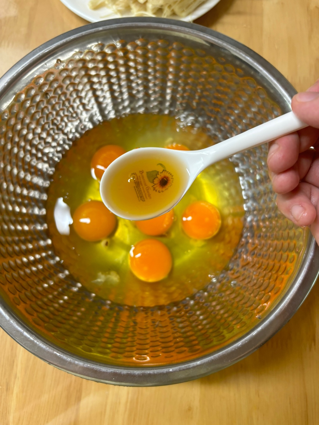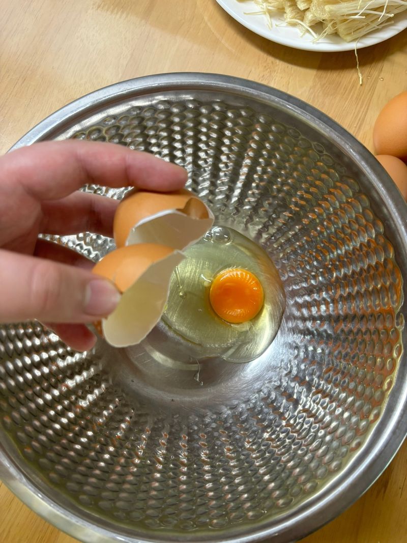 1인분은 팽이버섯 1개, 연두 한 스푼, 달걀 2개, 쪽파 1 줄기 준비해주세요!