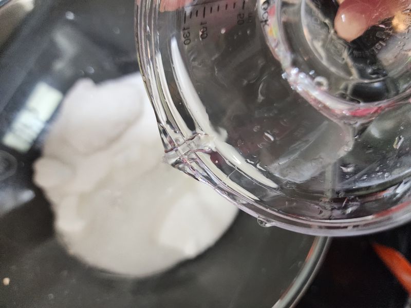 남은 설탕물을 작은 팬에 옮겨 담아 식용소다를 조금씩 부어주며 돌리시면