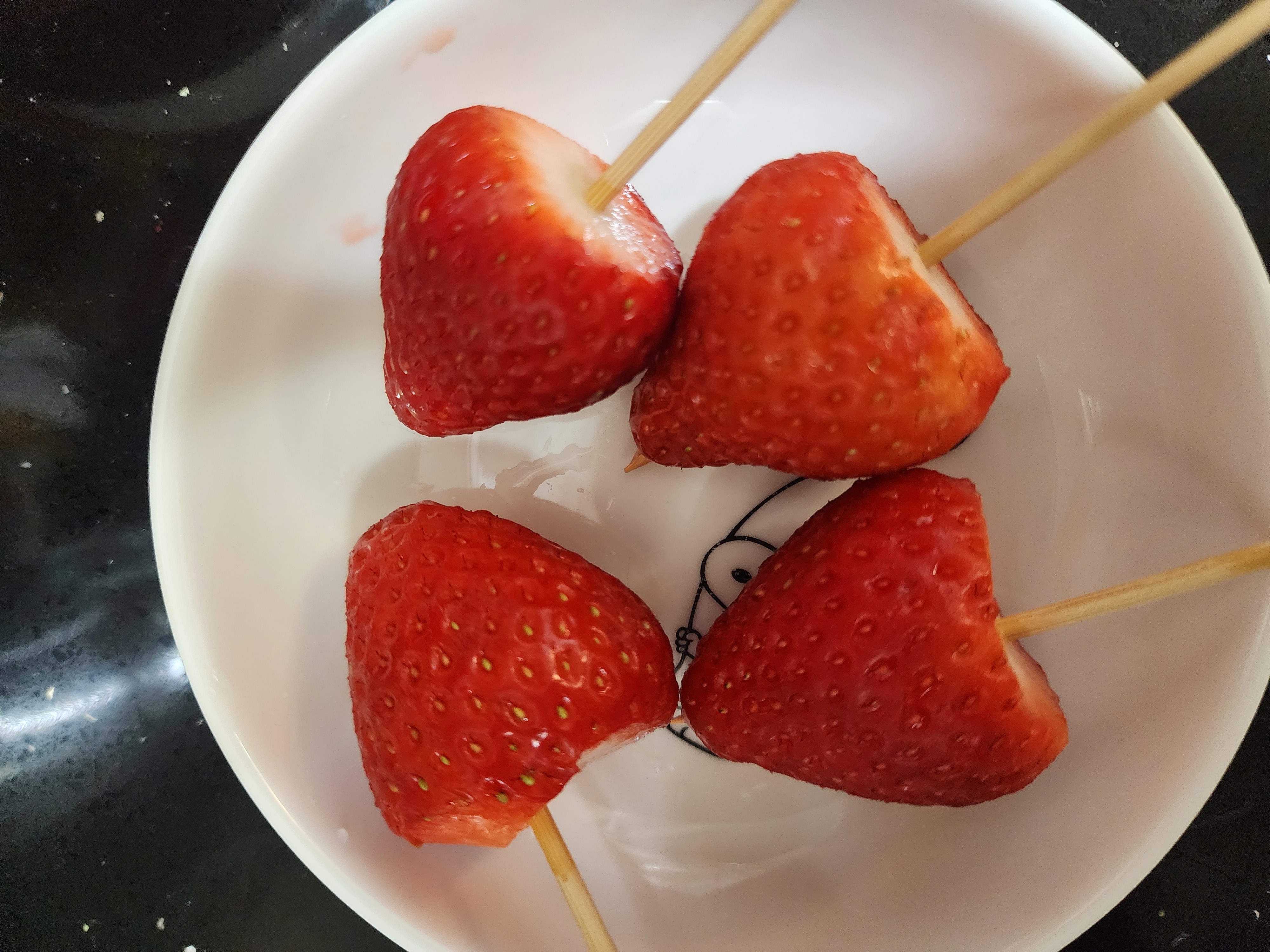 집 도착한 밤 9시에 아이랑 딸기 꼬치를 만들어 먹었답니다> <
