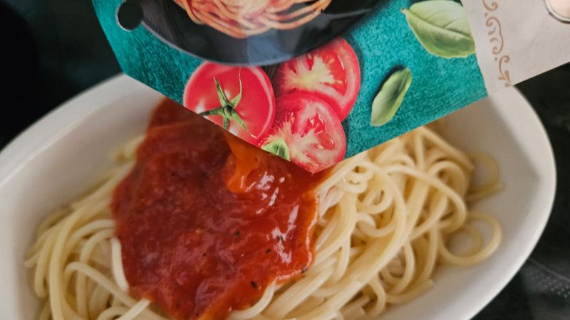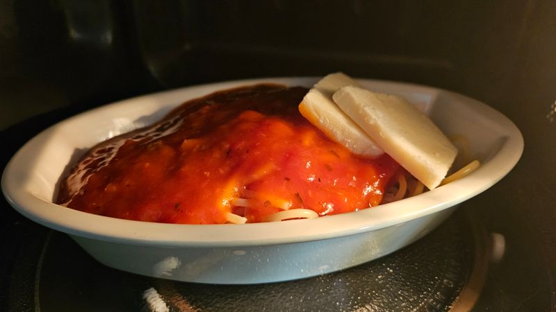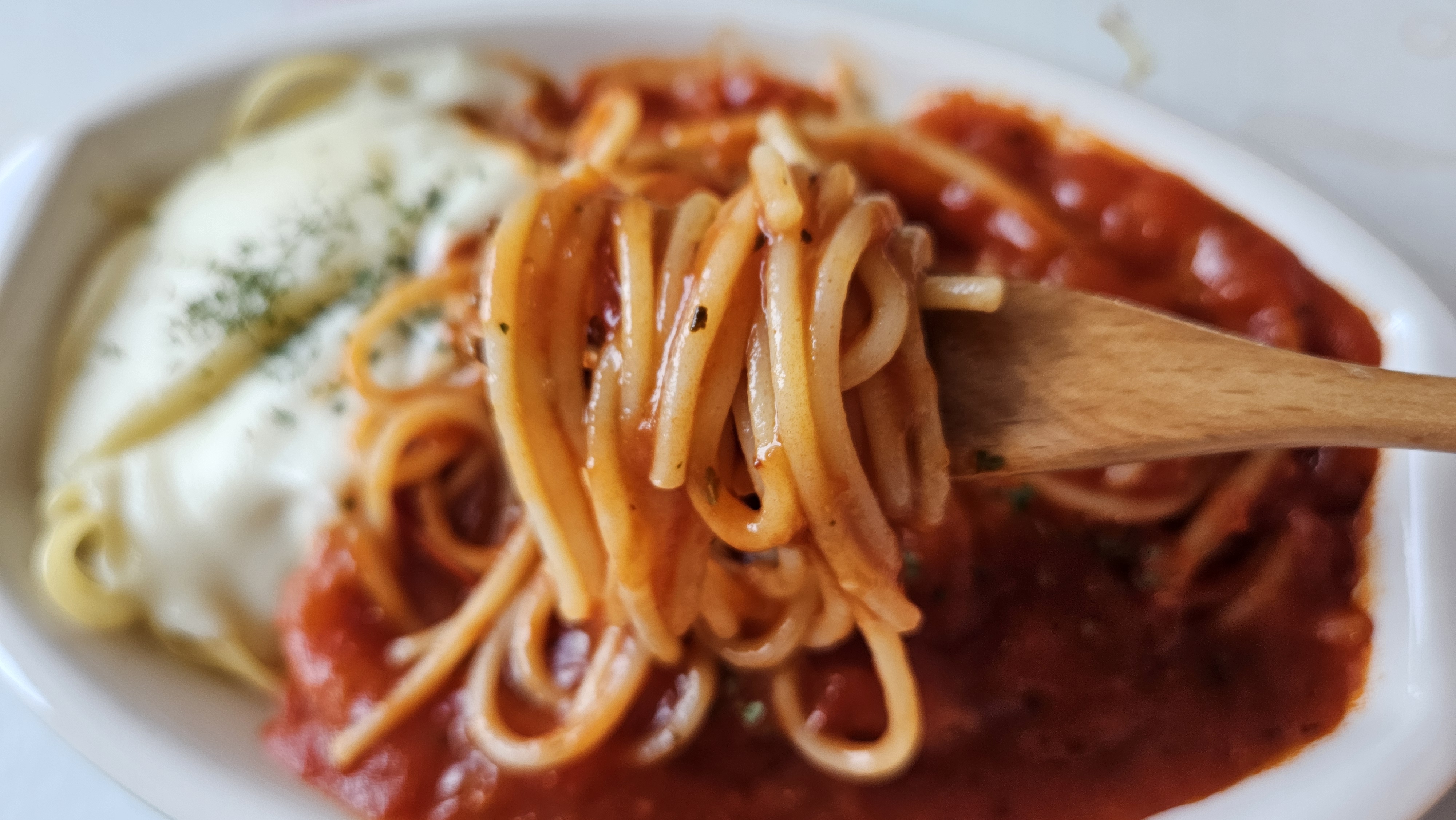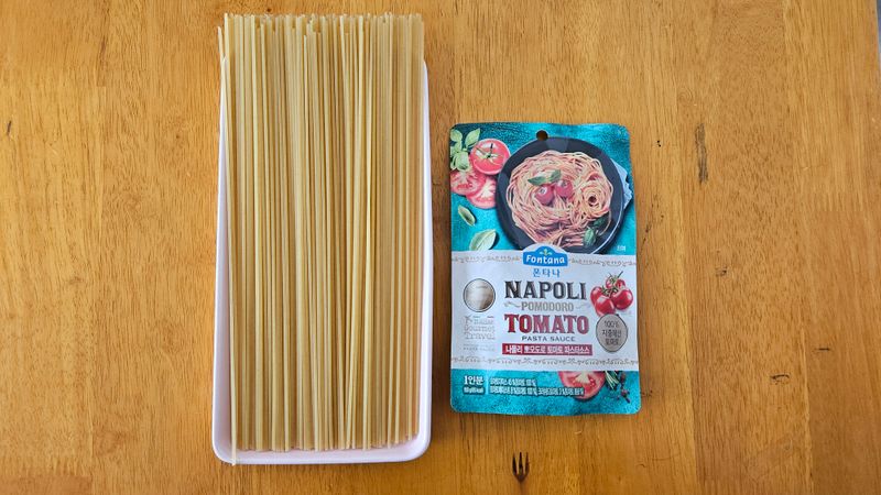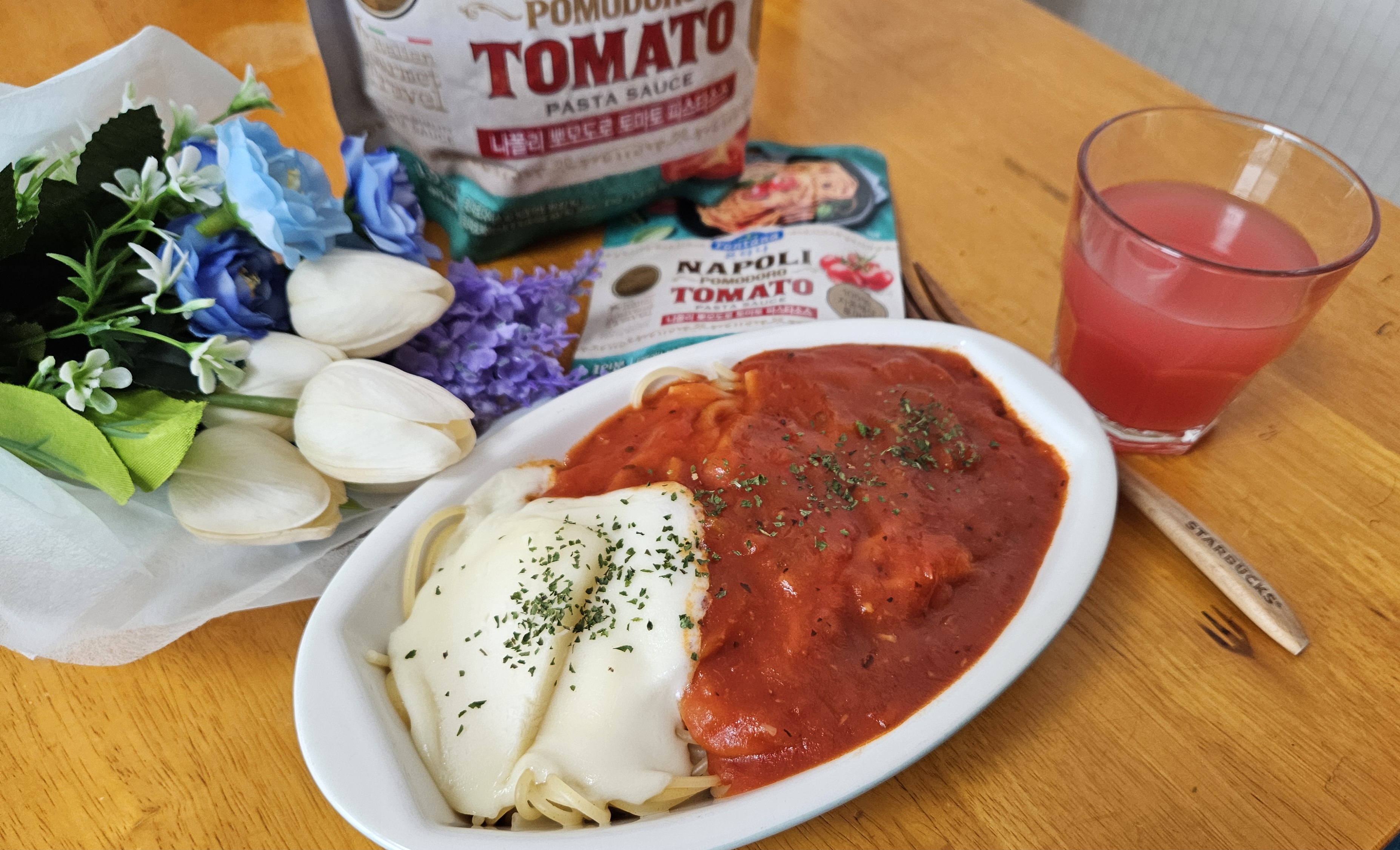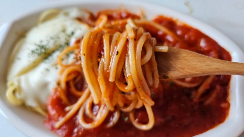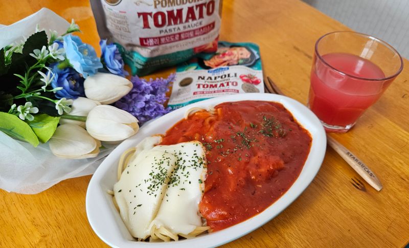 나폴리 토마토파스타에 모짜렐라 치즈 올려 먹으면