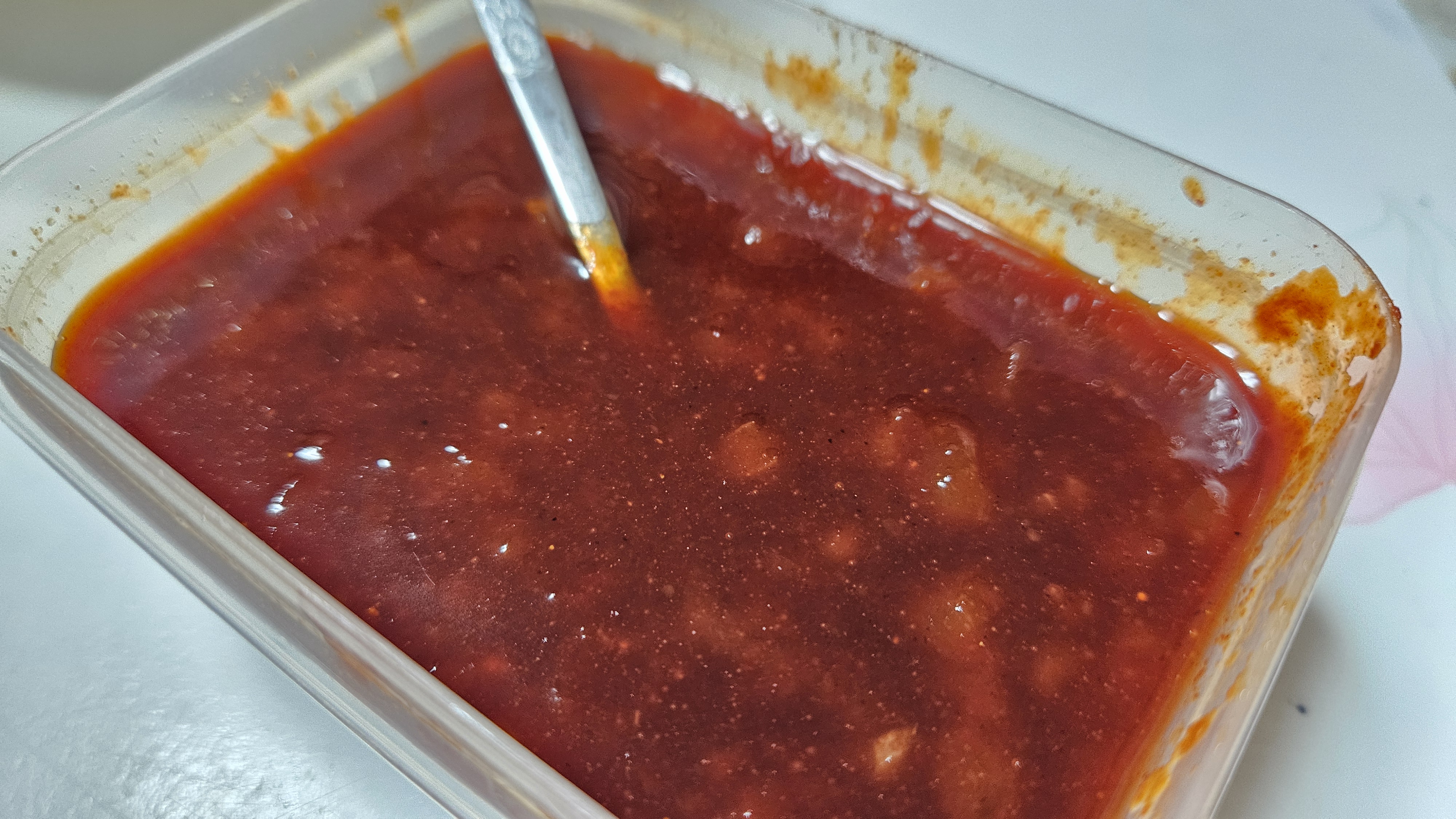 레시피 그대로 초고추장 125g 설탕 8스푼등등 을 넣고 만들었어요.