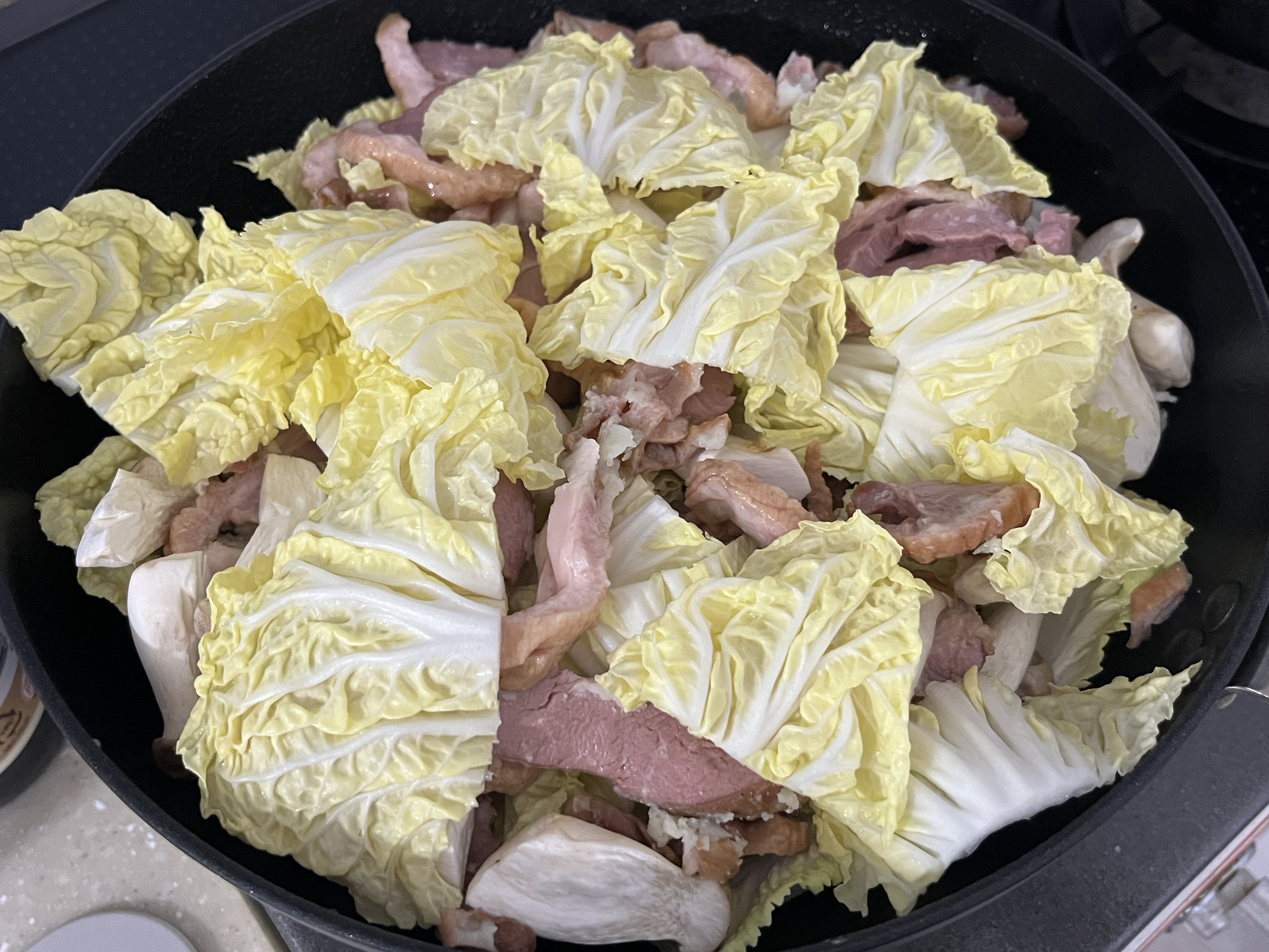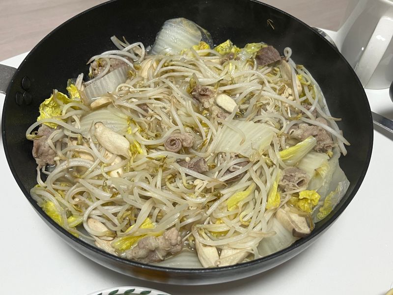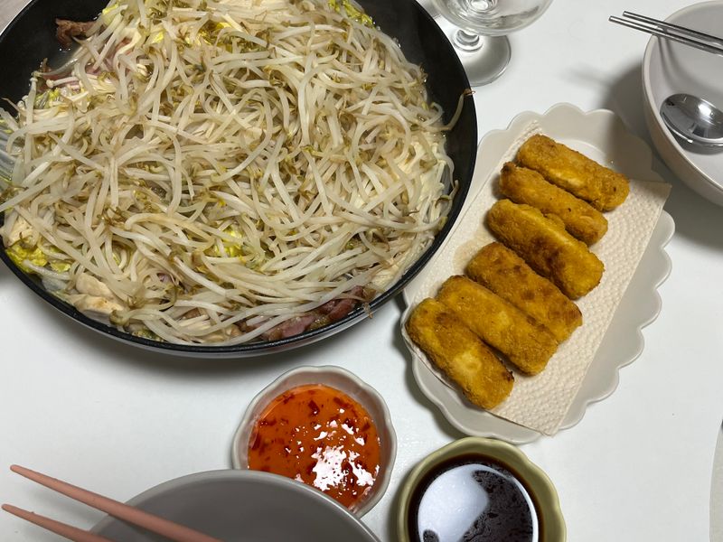 어제는 알배추, 배추, 각종 버섯(새송이, 팽이), 숙주볶음 그리고 오리고기 넣어 했었는데