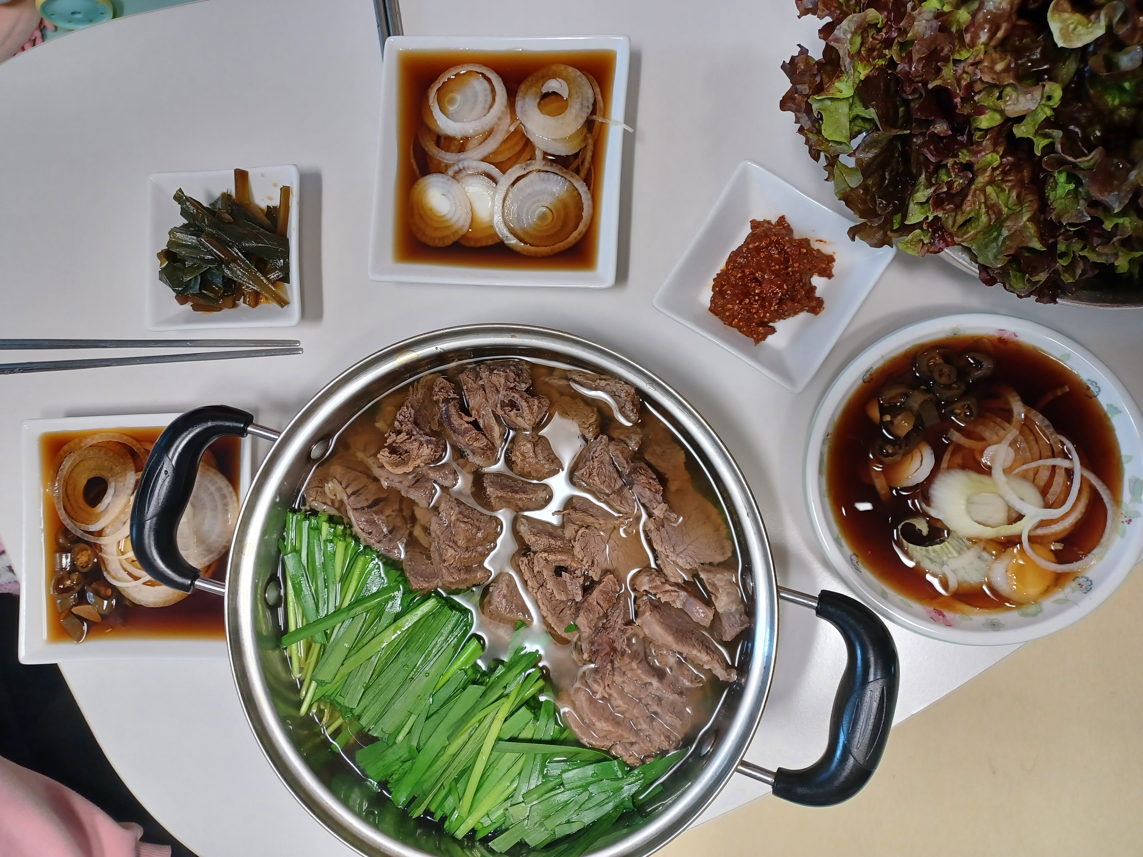 각종 야채를 넣어주고 닭이 익었을 때 불린 당면과 가래떡을 넣어 줍니다.