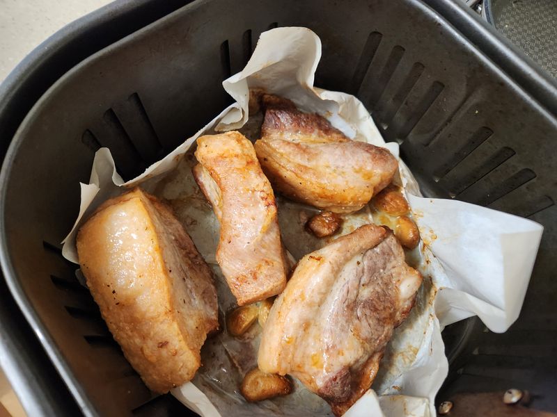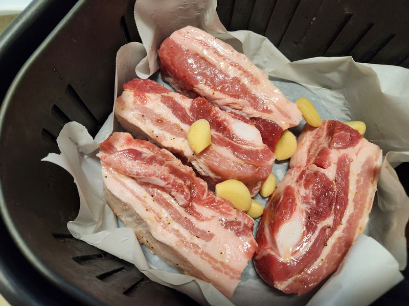 온가족~ 좋아하는 삼겹살🐷🐷 요번에는 통삼겹 구이를 해봤어요! 에어프라이어 굽기전 오일과 후추소금으로 마사지 한 후~ 예열된 에어프라이어에 190도 15분씩2번 너무맛있는 통삼겹구이 완성!! @박선주 나랑요리합시다🐷
