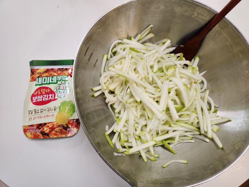 @박경주 님 오래전 새미네부엌 소개해주셔서 너무 잘 이용하고 있지요 저를 지목해주셔 요리챌리지 이어나가봐요💙💜🤎 저는 새미네부엌 보쌈김치양념으로 간단하게 무생채 해봤어요. 몇번 해먹어보니..이곳저곳 잘 활용중입니다. 가족중에 매운거 못먹는 식구가 있어서 고춧가루좀 덜 넣었어요. 하지만 양념이 맛나니 너무맛나더라고요. 요즘 정말 새미네부엌 양념들 잘 활용합니다.