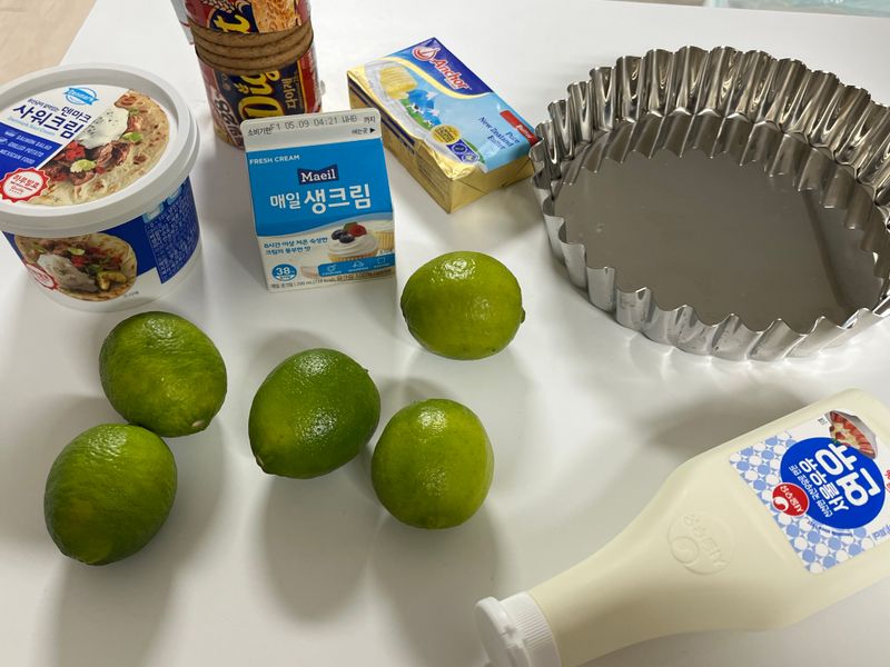 💚키라임파이(Key Lime Pie)💚 미국에서는 흔한 디저트라는 키라임파이!! 상콤한 걸 좋아하는 제가 함 만들어봤어요🤭 (남자친구 생일 기념으로 만든 케이크랍니다💕) 재료가 생각보다 간단하고 공정은 쉬운데요.. 라임 5개 즙 짜는 과정이 너무 힘들었어요😅 그래도 직접 만들어서 너무 뿌듯뿌듯~! 레시피는 유튜버 자도르님꺼 보고 했답니다✨