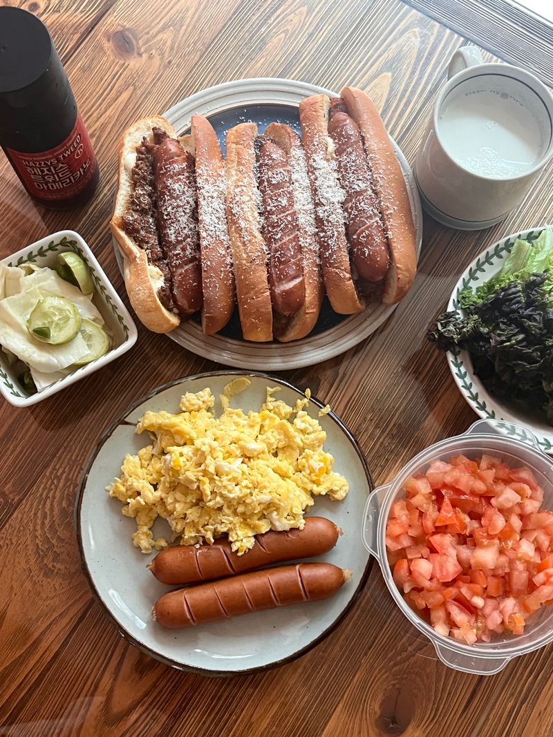 저번에 만든 라구소스로 주말엔 핫도그를 만들어봤어요!