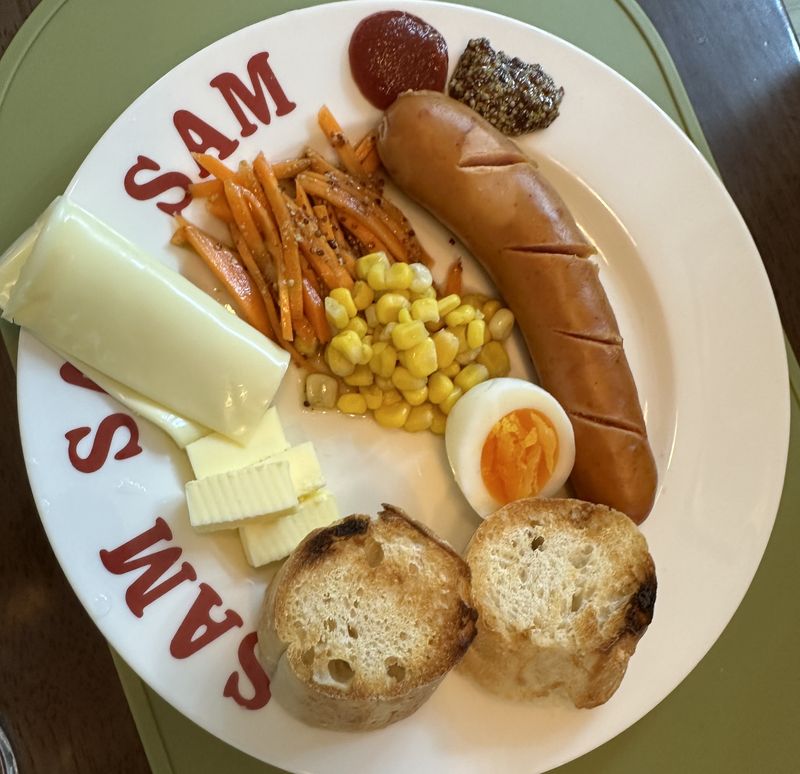 와우 ~~ 미국식 식사네요 ㅎㅎ 빵옆에는 버터인가요?! 치즈인가요?!