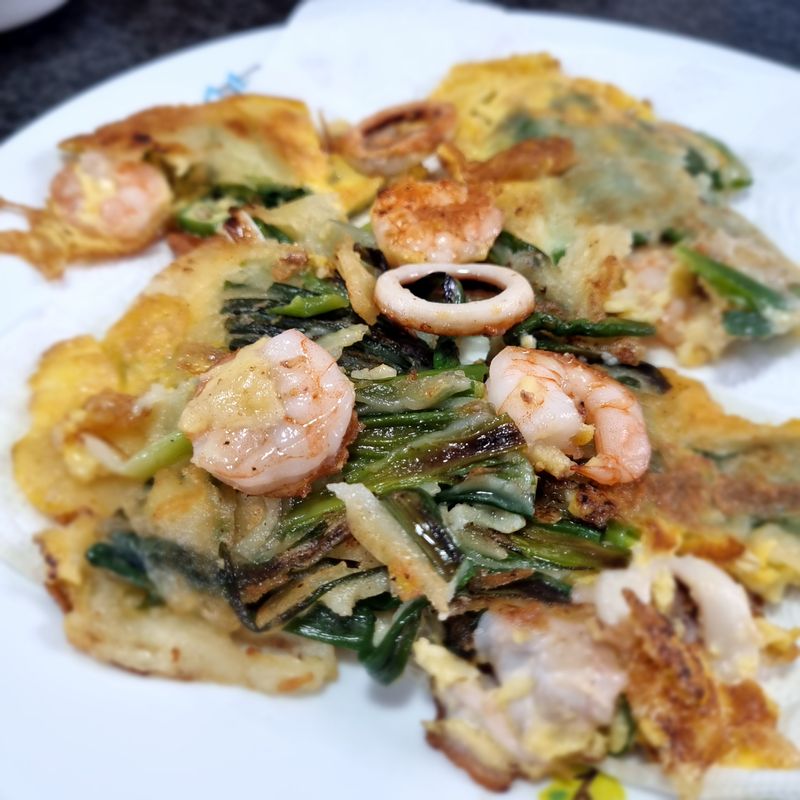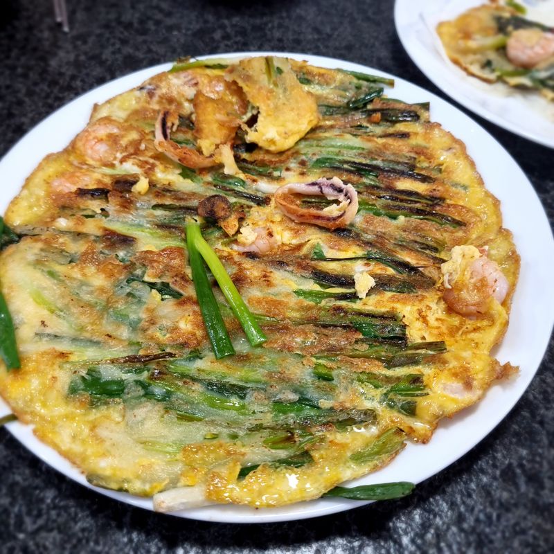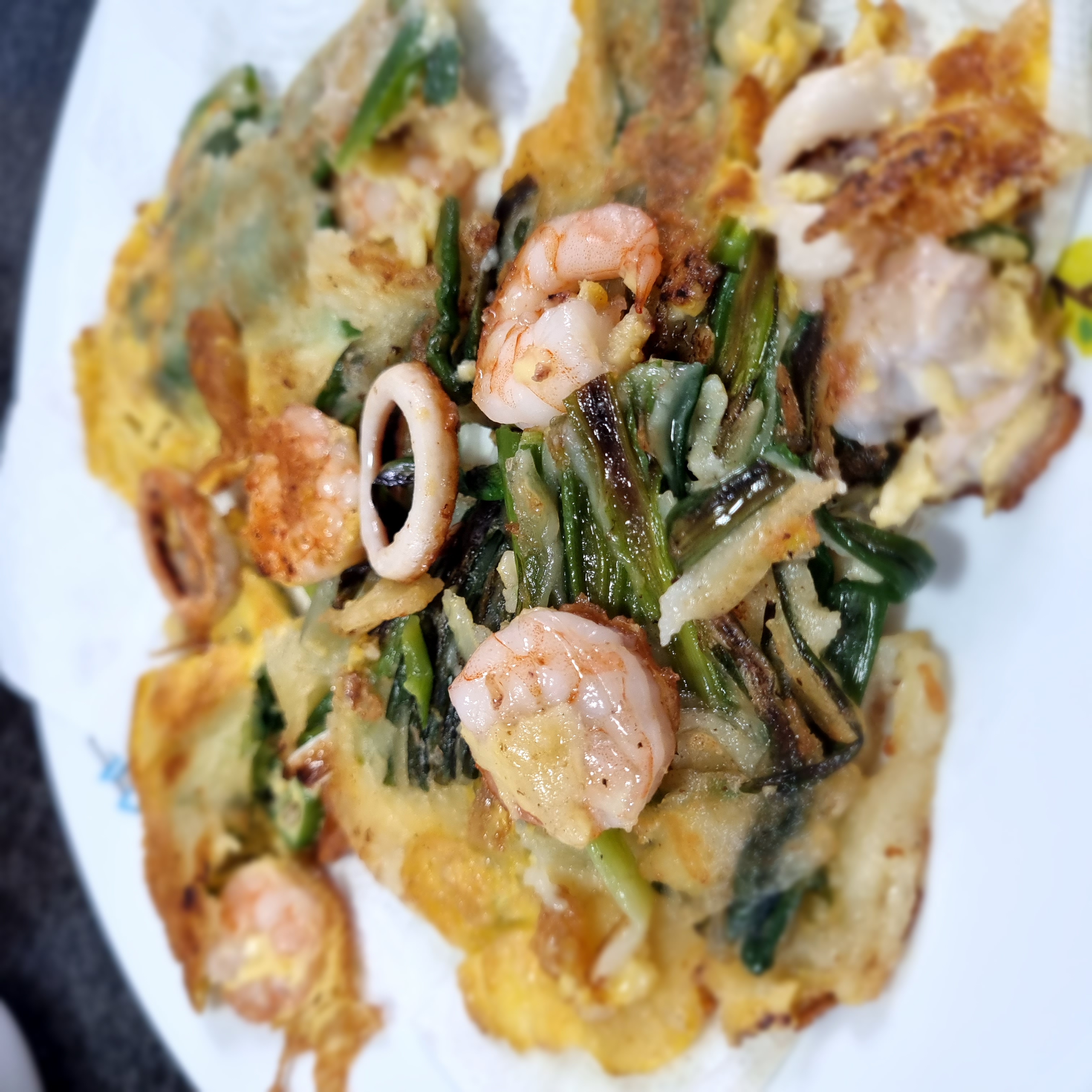 이웃과 함께 보낸 휴일 저녁 모여앉아 해물파전에 막걸리 한잔 했어요. 오징어 새우 준비하고, 쪽파실파 씻어 자르고, 부침가루 전분가루 섞어 부쳤어요. 반죽 적게하고, 계란물부어 전문식당처럼 멋들어지게 부치고 싶은 마음이었는데 너다섯장 중에서 마지막쯤 되어서야 온전한 파전이 만들어졌다는..ㅎㅎㅎ;;; 맛 기똥차단 반응에 뿌듯하고 행복합니다 :-)
