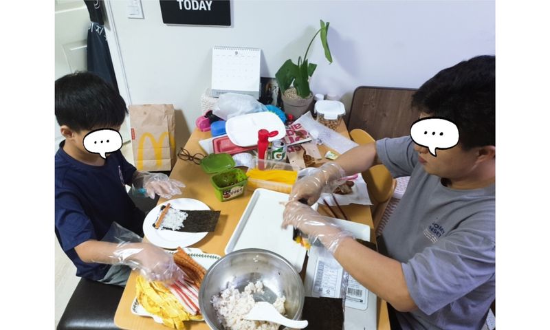 주말엔 아빠랑 아들이랑 킥킥대며 자주 요리해요 🎵 부자가 재료준비 부터 착착착, 마무리는 엄마가 해야하지만 입짧은 아이 채소먹이기엔 홈쿠킹이 최고에요